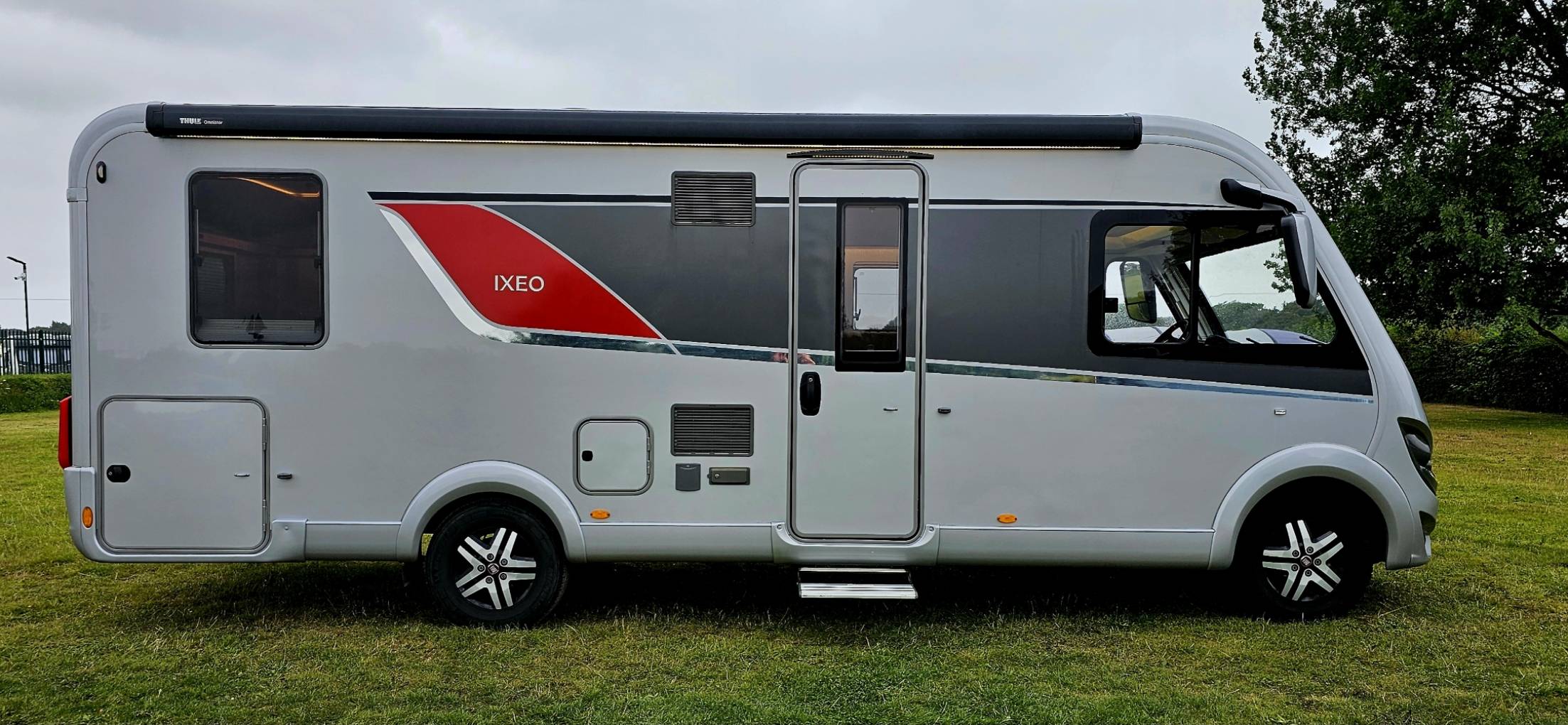 The motorhome comes with Pioneer Multimedia with Sat Nav, Bluetooth, cab air con, cruise control, 3 point Reversing cameras, front cab blinds, Solar Panel, TV, Aerial, Truma hot water and heating system, spare tyre, wind out awning with LED light strip.