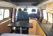 The front double seat swivels round making the central seating area very comfortable and a great socialising and dinning space. To the back, the rear seat easily makes into a good size double bed with 2 belts and storage underneath.