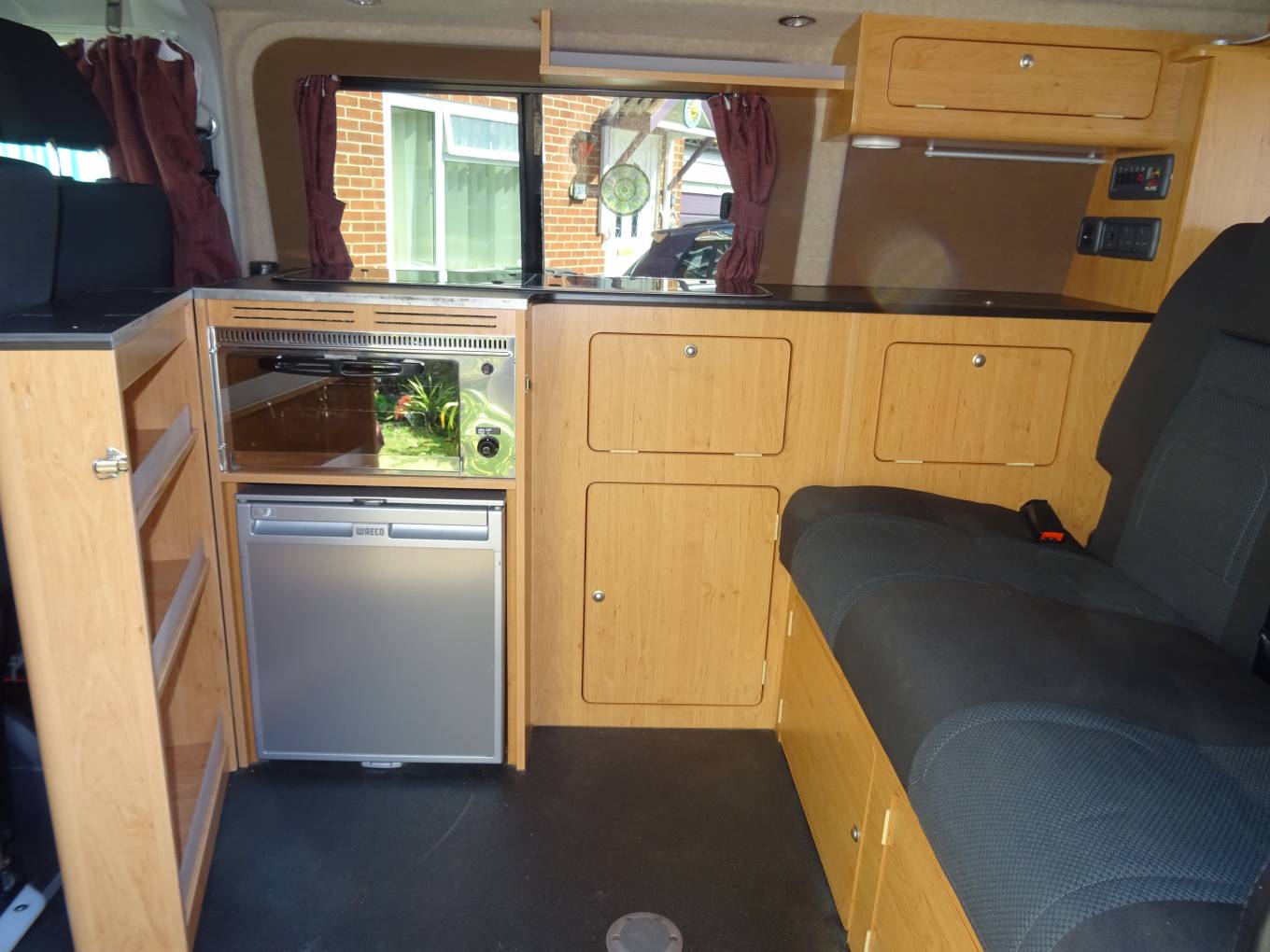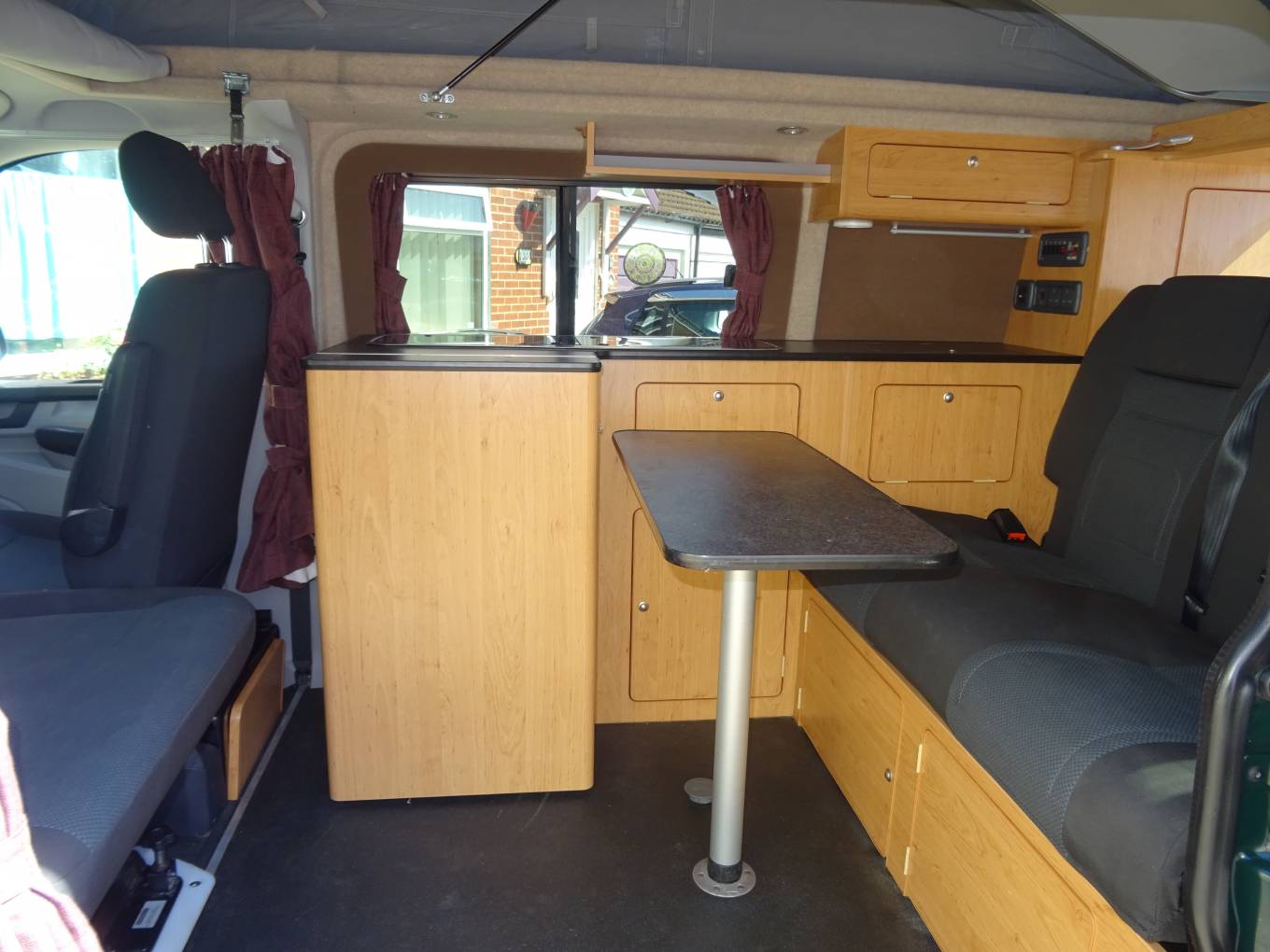 The pop top bed with gas risers sleeps 2 people. Other great features: radio, leisure battery, black out curtains and tinted windows, sockets, and plenty of storage through out. This camper is in good condition and has been looked after well from new.