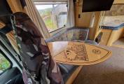 Entering the motorhome on the passenger side on the left is the kitchen which comes fully equipped with a large Dometic fridge with freezer, 4 x gas hobs, sink, microwave and plenty of storage for cutlery, condiments and crockery.