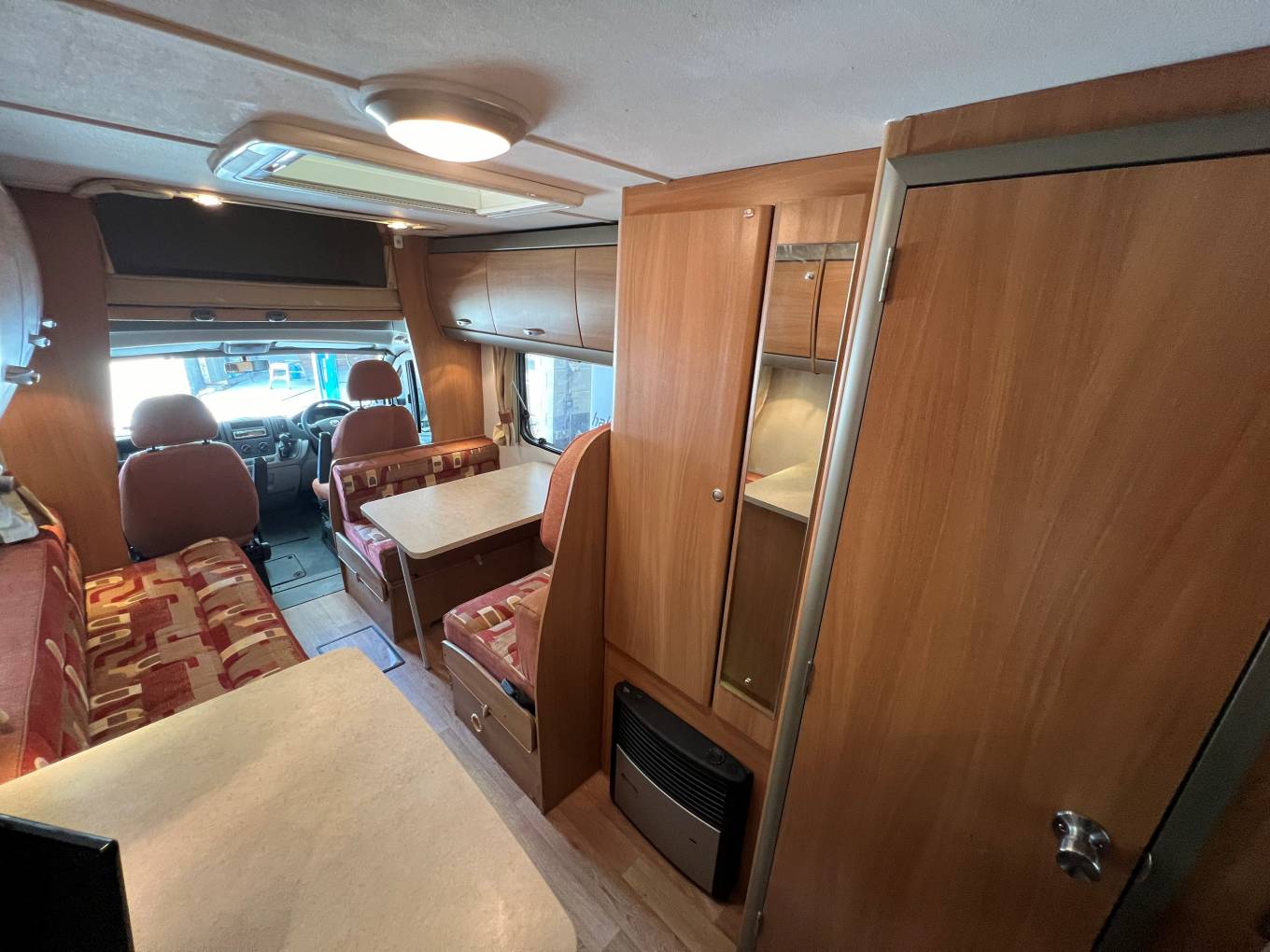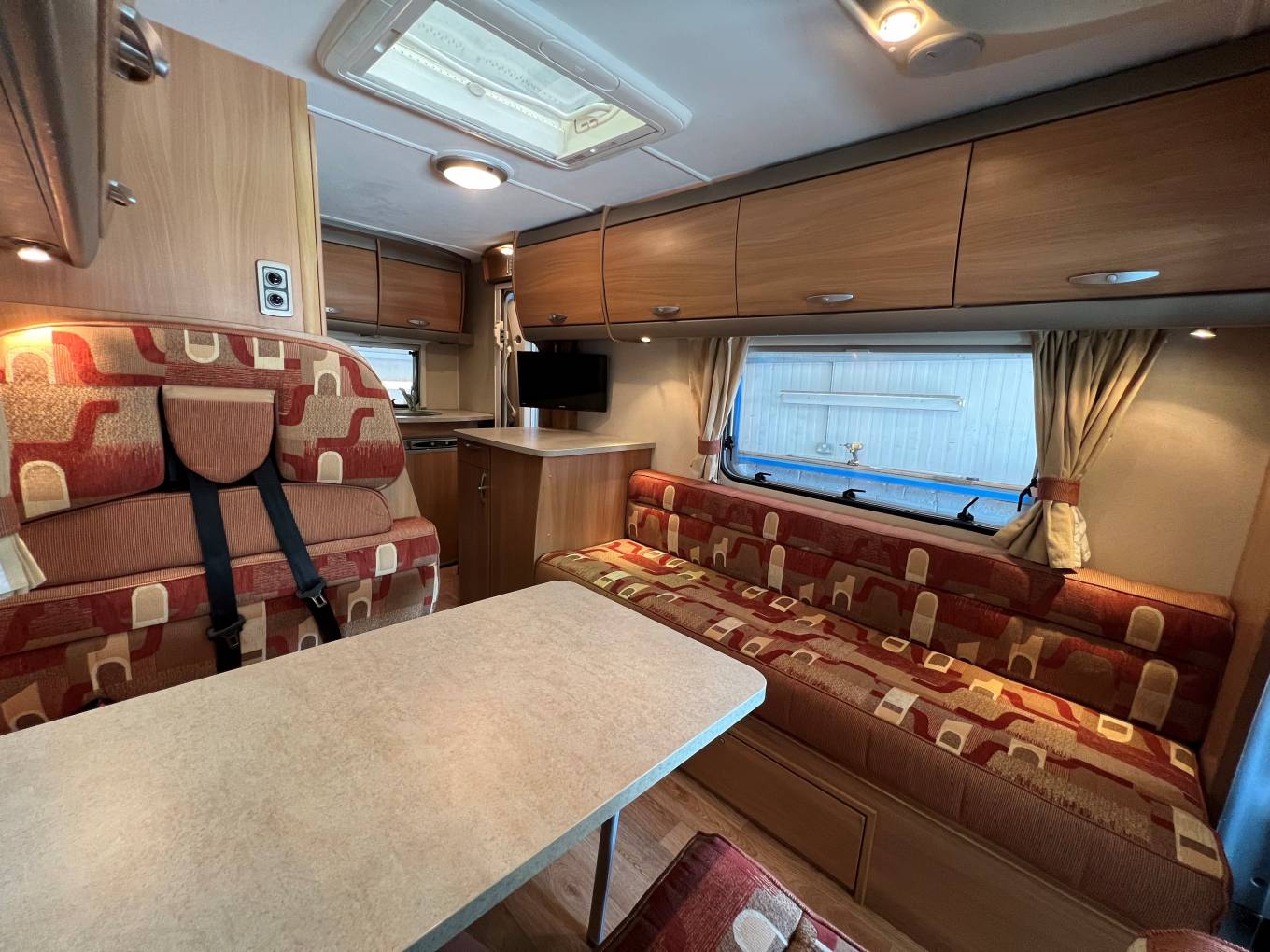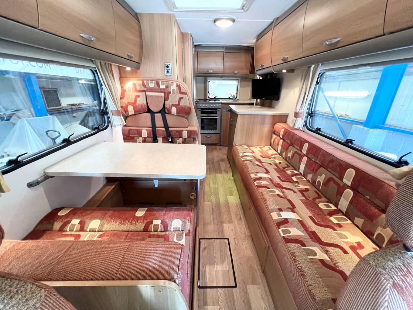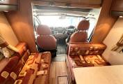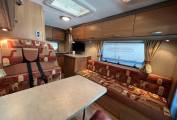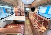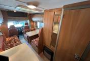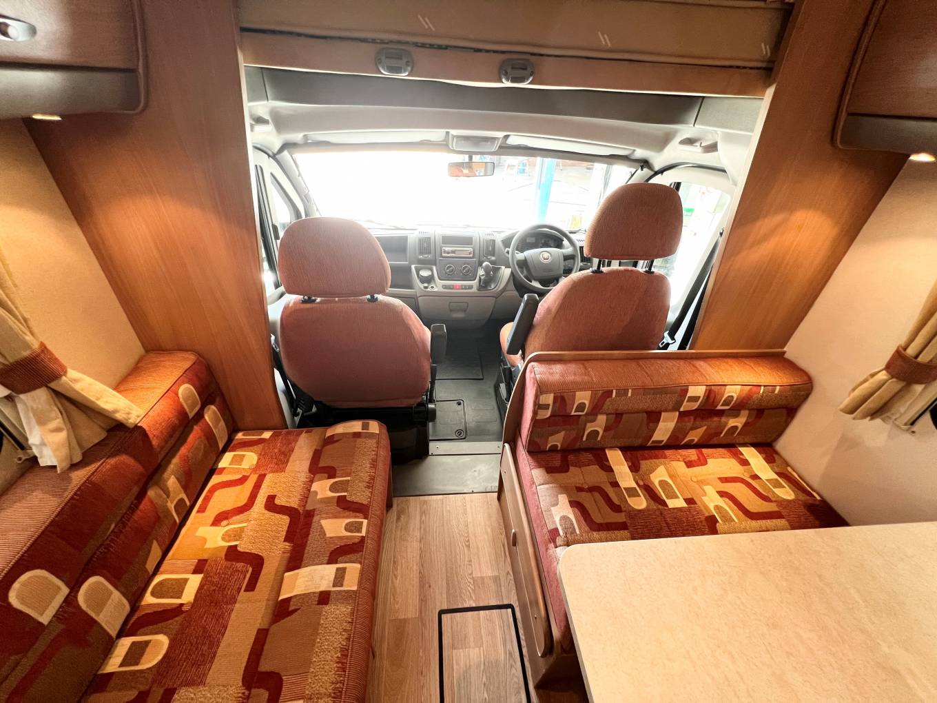 Probably the highlight of this lovely motorhome is the huge centrally located lounge which really is a wonderful place to enjoy meals, drinks and fun times with family or friends. It consists of a large side facing sofa and this can be used as a single bed which will be long enough for most adults. On the opposite side is the dinette area featuring a forward facing two seater sofa fitted with two travelling seat belts and a rear facing two seater sofa. All of the upholstery is in excellent condition as the seller keeps it covered when she uses the motorhome. The dining table attaches to a side rail and this can be removed if you require more legroom or a more traditional style lounge layout. The dinette converts into a double bed which is plenty large enough for 2 adults. The remaining 2 sleeping berths are in the overcab bed although many people prefer to use this area for storage as you can pack a huge amount of equipment or bedding up there.