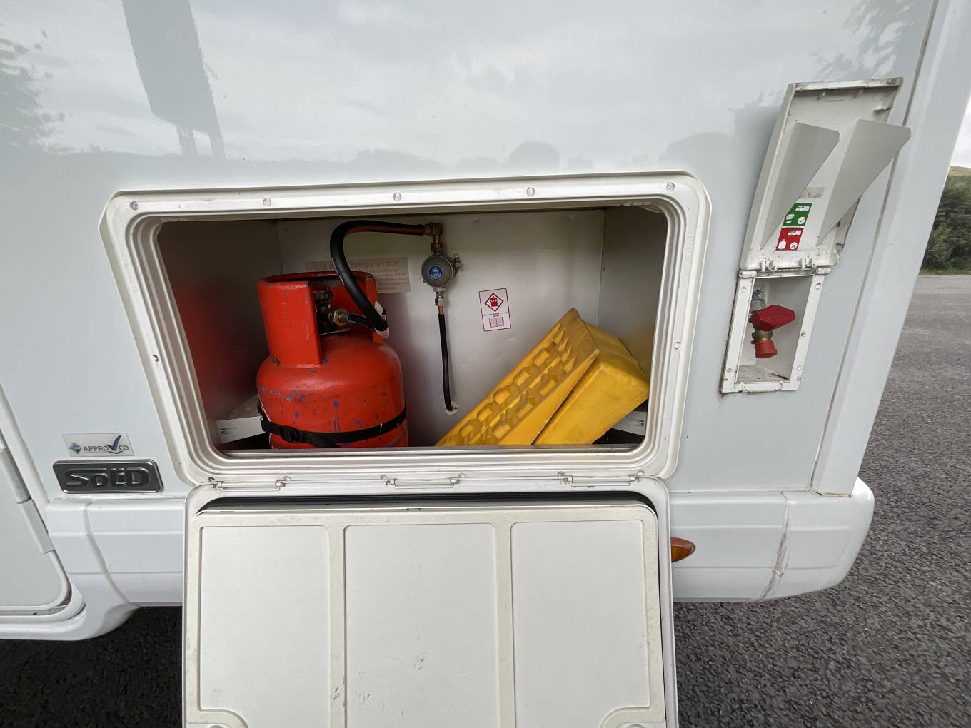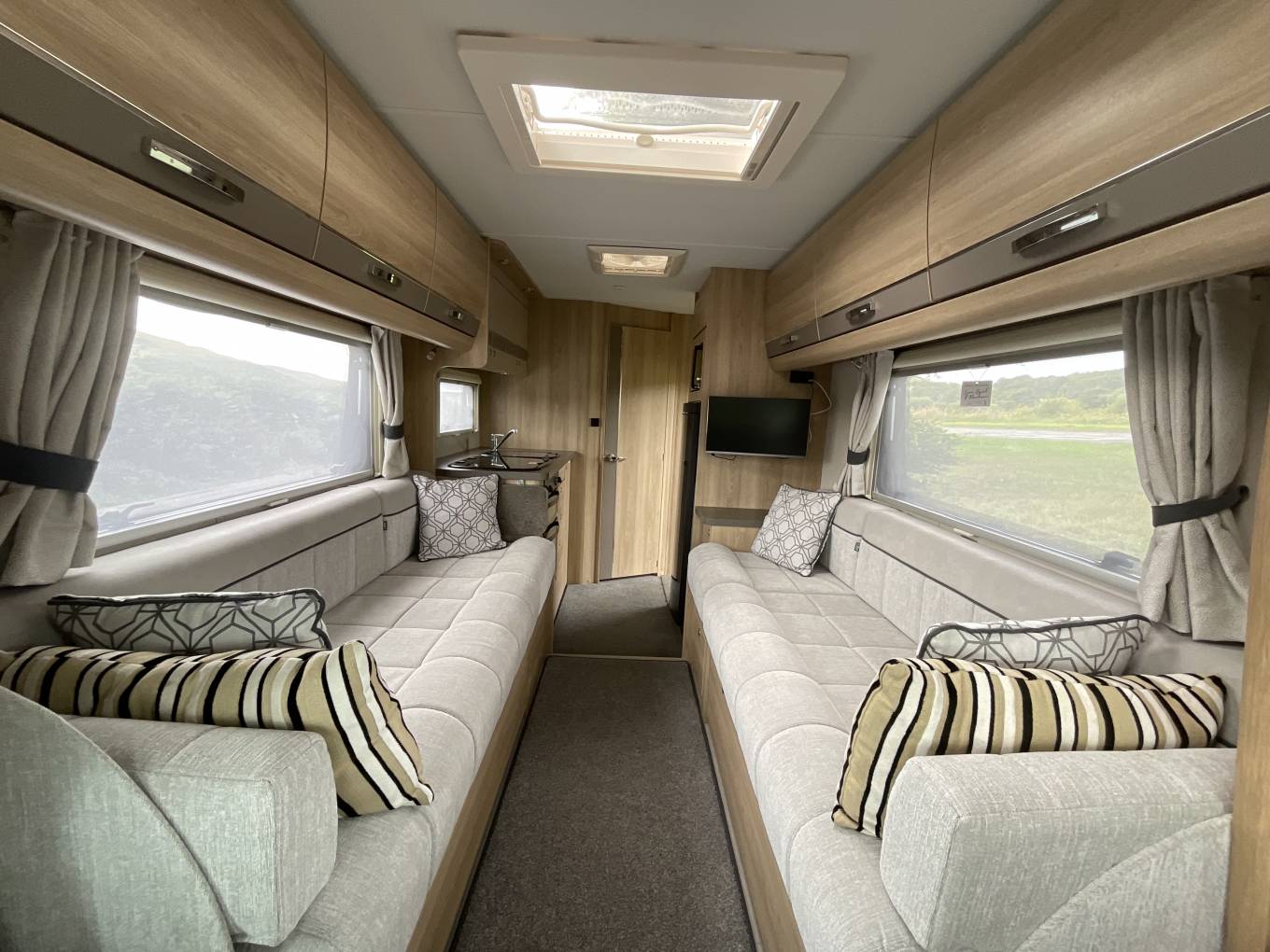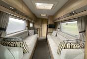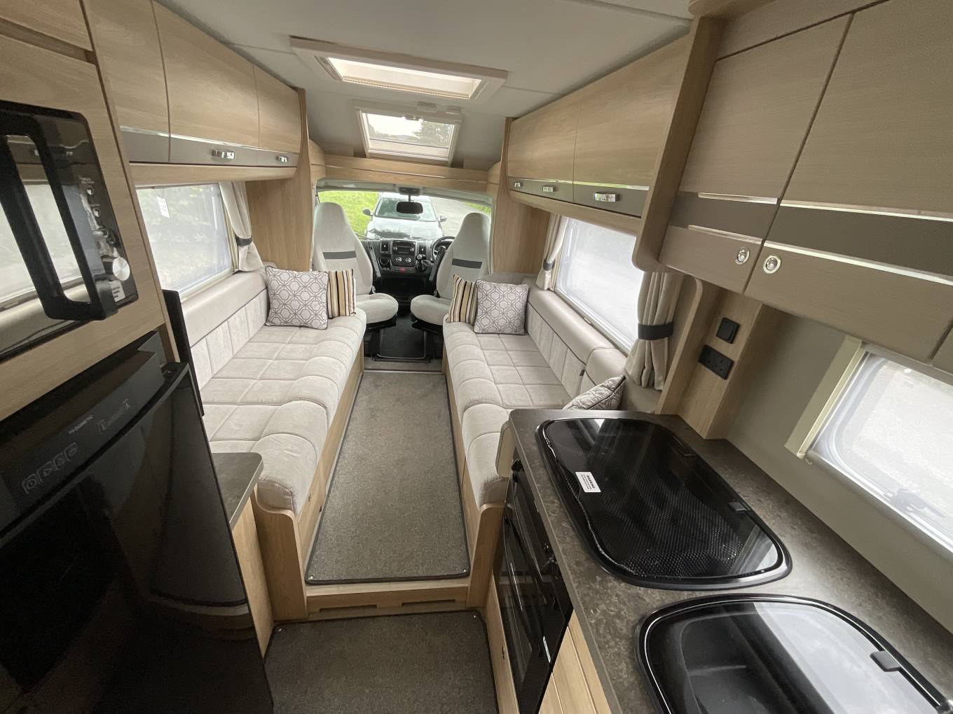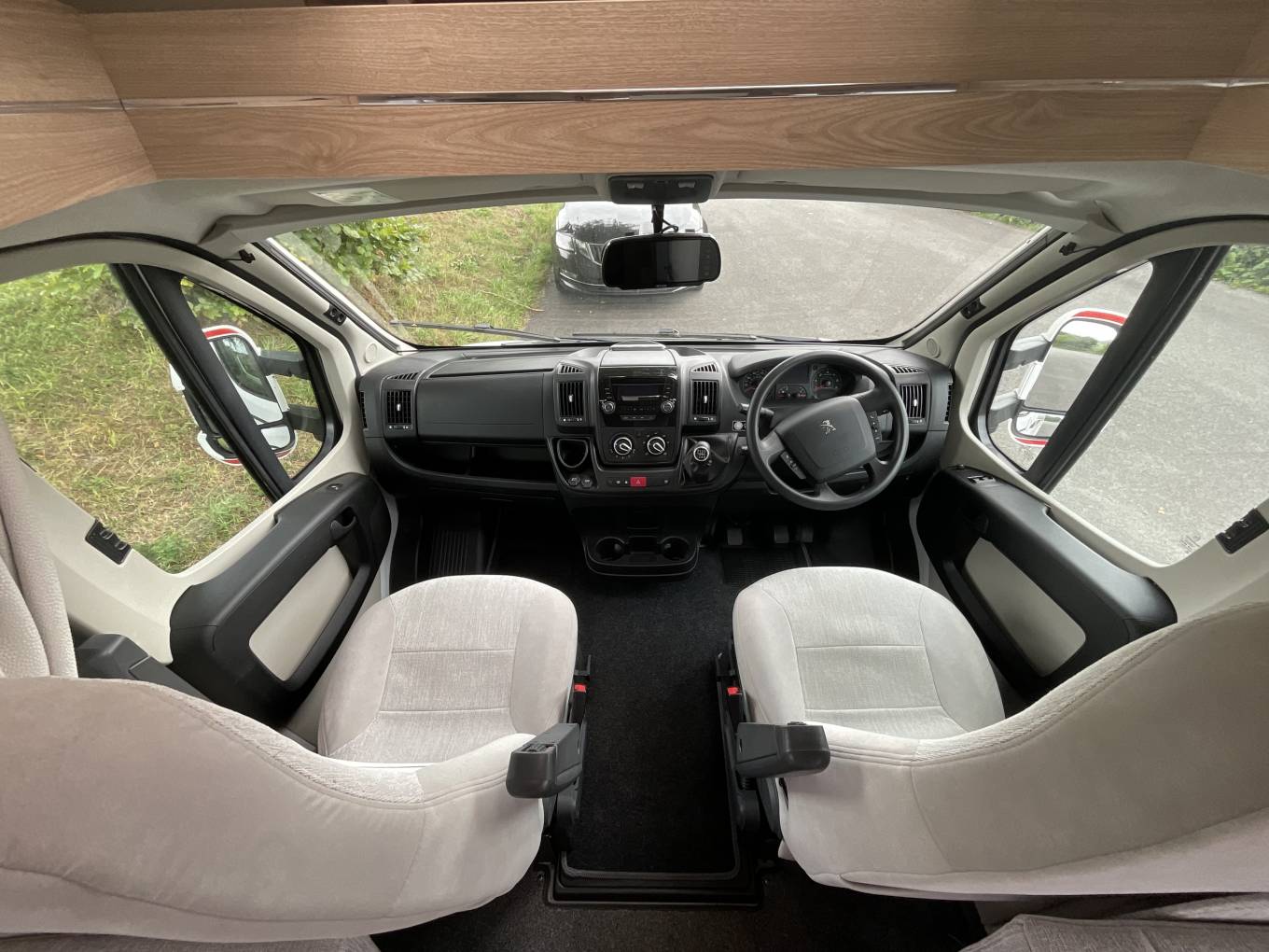 The motorhome is built on the Peugeot Boxer chassis and has a 2L Euro 6 engine with 6 speed manual gearbox. The cab has air conditioning, cruise control, a rear camera and Remis front and side blinds.