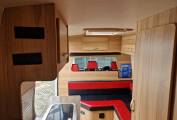 As you step inside, the layout is a rear transverse bed that sits above the rear garage. You can access the garage from the inside through a storage flap underneath the ladder to access the bed.