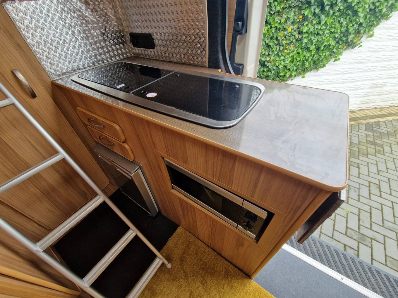 The kitchen comes fully equipped for everything the travelling chef needs, including gas hobs, sink with water pump, microwave, fridge and freezer.