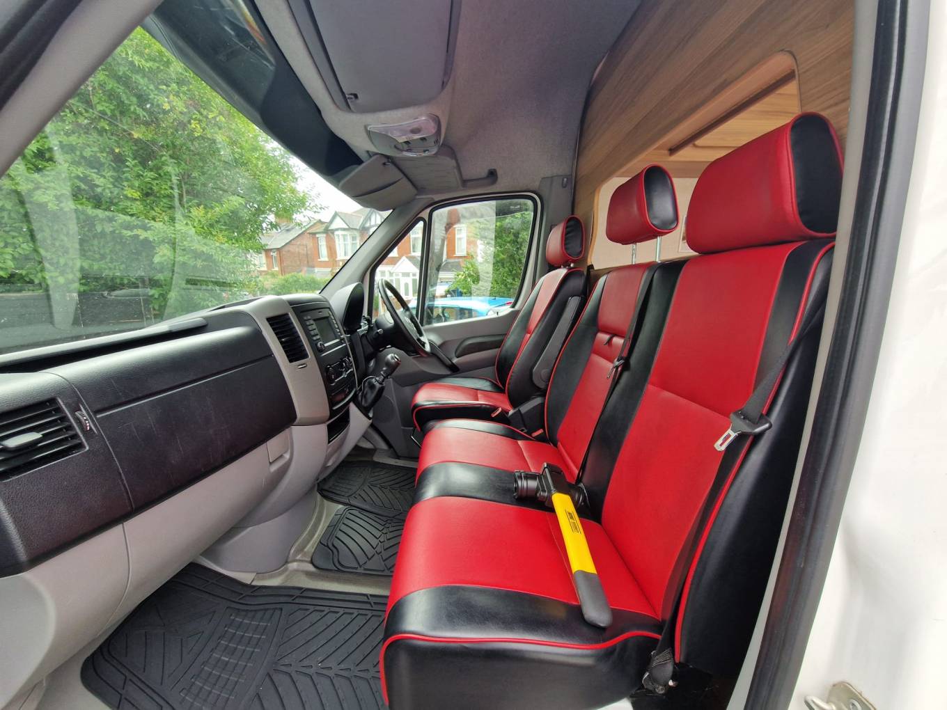 Motorhome Depot are pleased to present this 2015 VW Crafter LWB 3-berth,3-belt Racevan Panelvan.Based on the VW Crafter LWB,it is powered by the excellent 2.0TDi 161BHP VW engine and 6-speed gearbox. Having done only 93000 miles, it has some service history including a service,cambelt and water pump replacement on 19.1.23 and has an MOT until 2025. It has a GVW of 3500kg so it can be driven on a standard UK licence and is 6.84m long.
