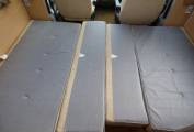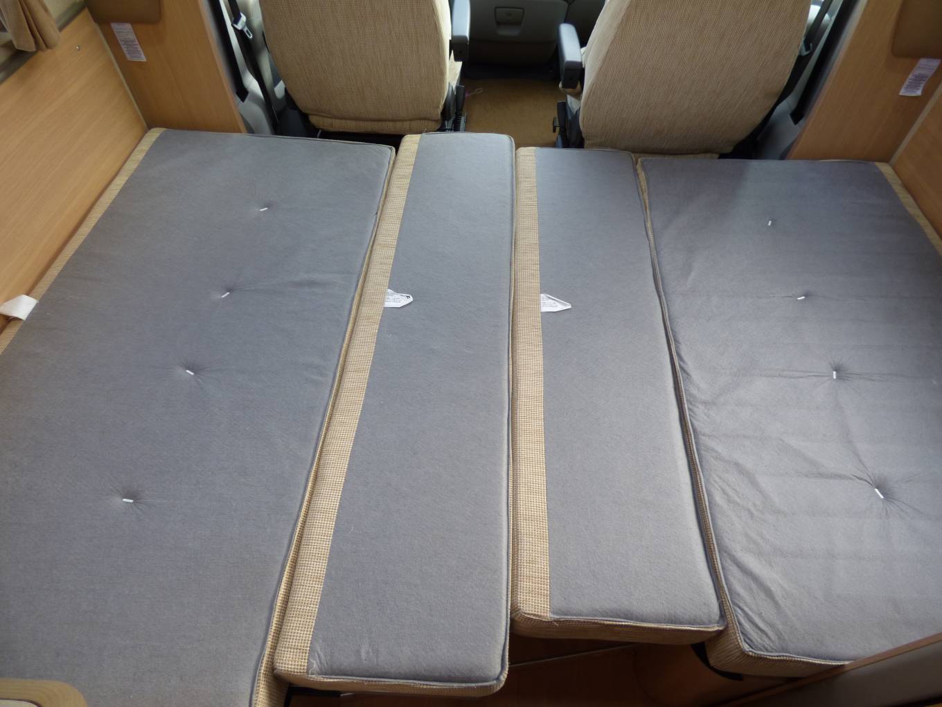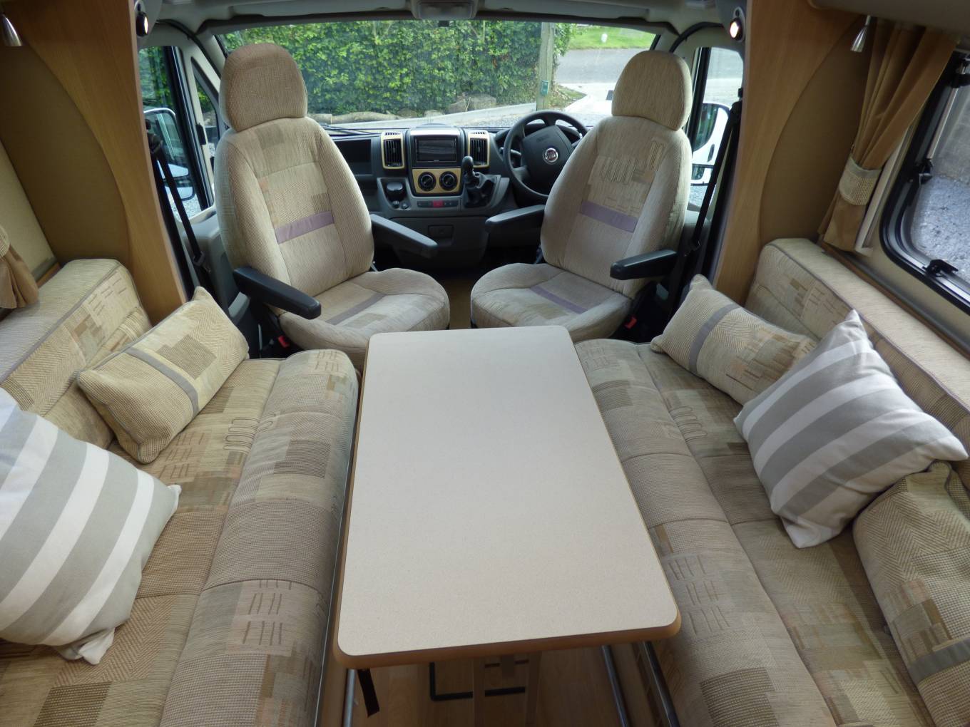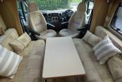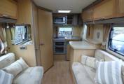 The sleeping accommodation is in the two side sofas which pull together in seconds to form a large double bed. Both sofas are over lockers one of which can be accessed from the exterior. During daytime the sofas, along with the two swivel "Captain" style seats form a very comfortable lounge area with the versatile collapsible table which stows in the kitchen area.