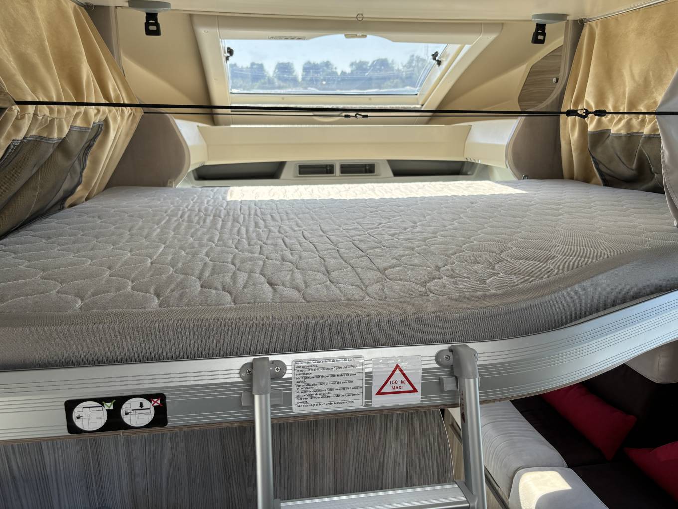 In the cab there are all the usual features with air con, radio, bluetooth, usb and reversing camera. Extras also include Gaslow refillable gas system, wind out canopy, bike rack and solar panel.