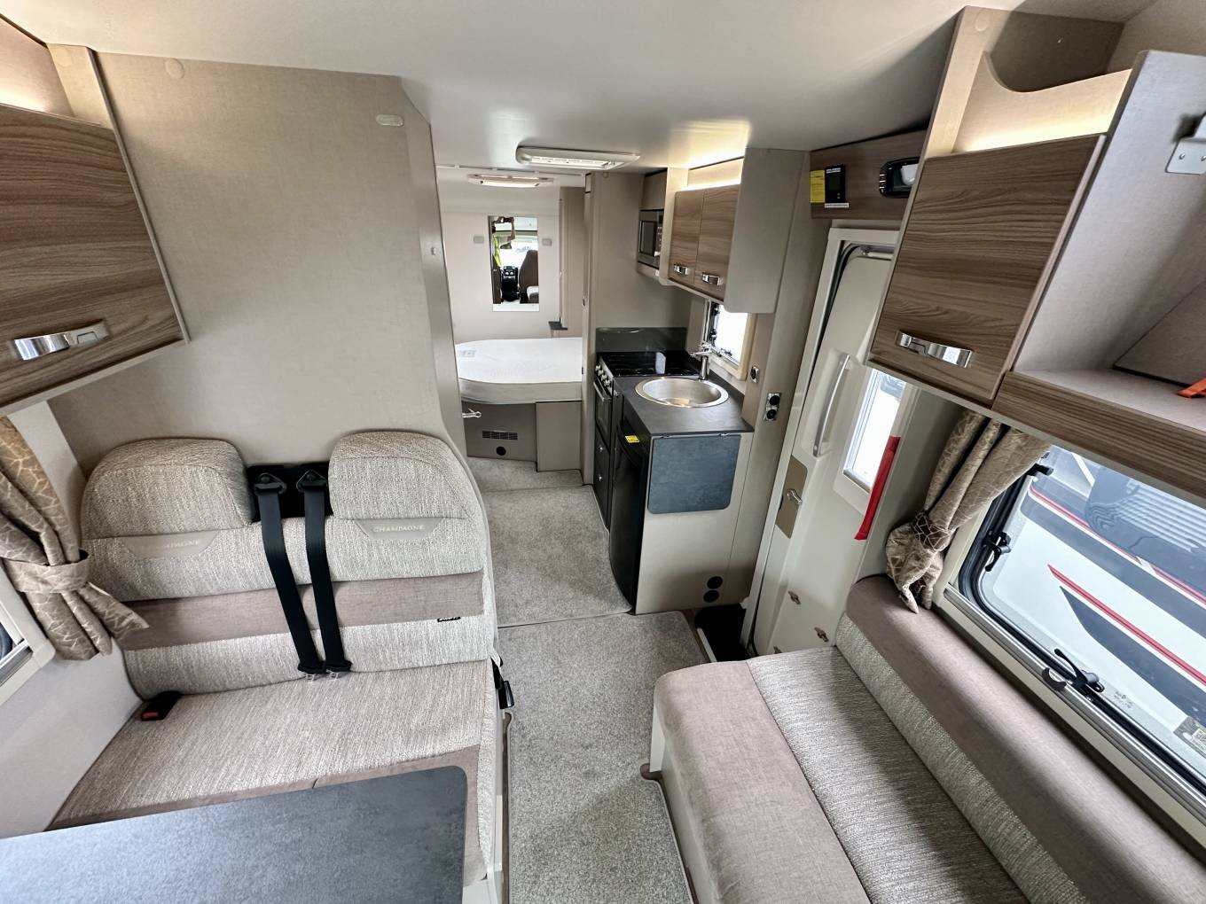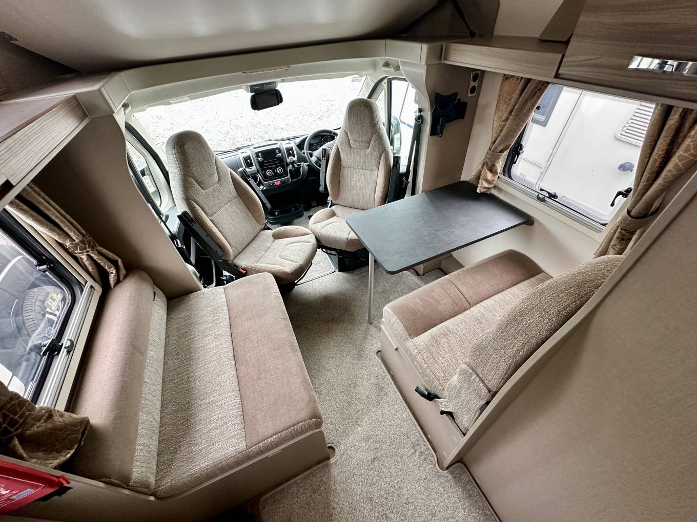 The Swift Champagne range comes with a well thought out specification which is truly class leading. The exterior champagne cab colour, decals and soft furnishings bring an elegance and luxurious feel throughout. Designed with year-round use in mind; not only does it have Grade 3 thermal insulation to keep the heat or cold out, it has a large, adjustable Thule awning, which gives you the option to have a flexible shaded area when the sun shines.