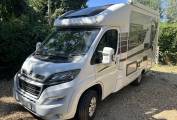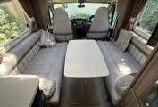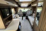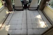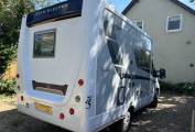 The silver grey body contrasts with the white cab and the stylish graphics give this motorhome a look of real quality. Externally there is a wind out awning and a spare wheel. It also features an underslung gas tank which means that you pump your gas straight in from an LPG pump saving you around 70% on your gas costs. As there are LPG pumps all over Europe this makes European touring much easier as you don't have to hunt for filling stations selling the right size replacement gas bottles. There is a roof mounted solar panel to keep your leisure battery topped up which means you can do some wild camping if you are feeling adventurous.