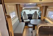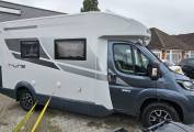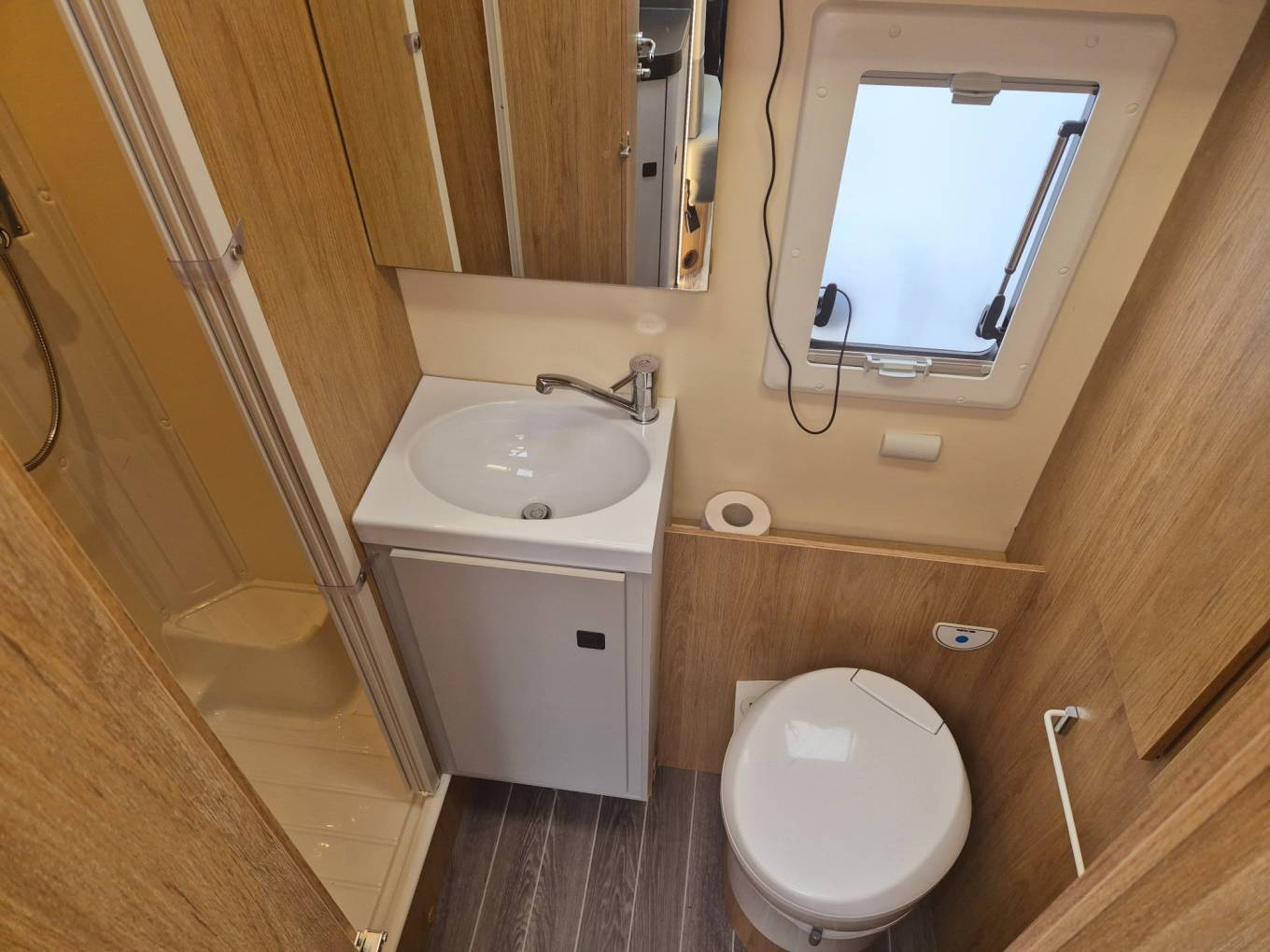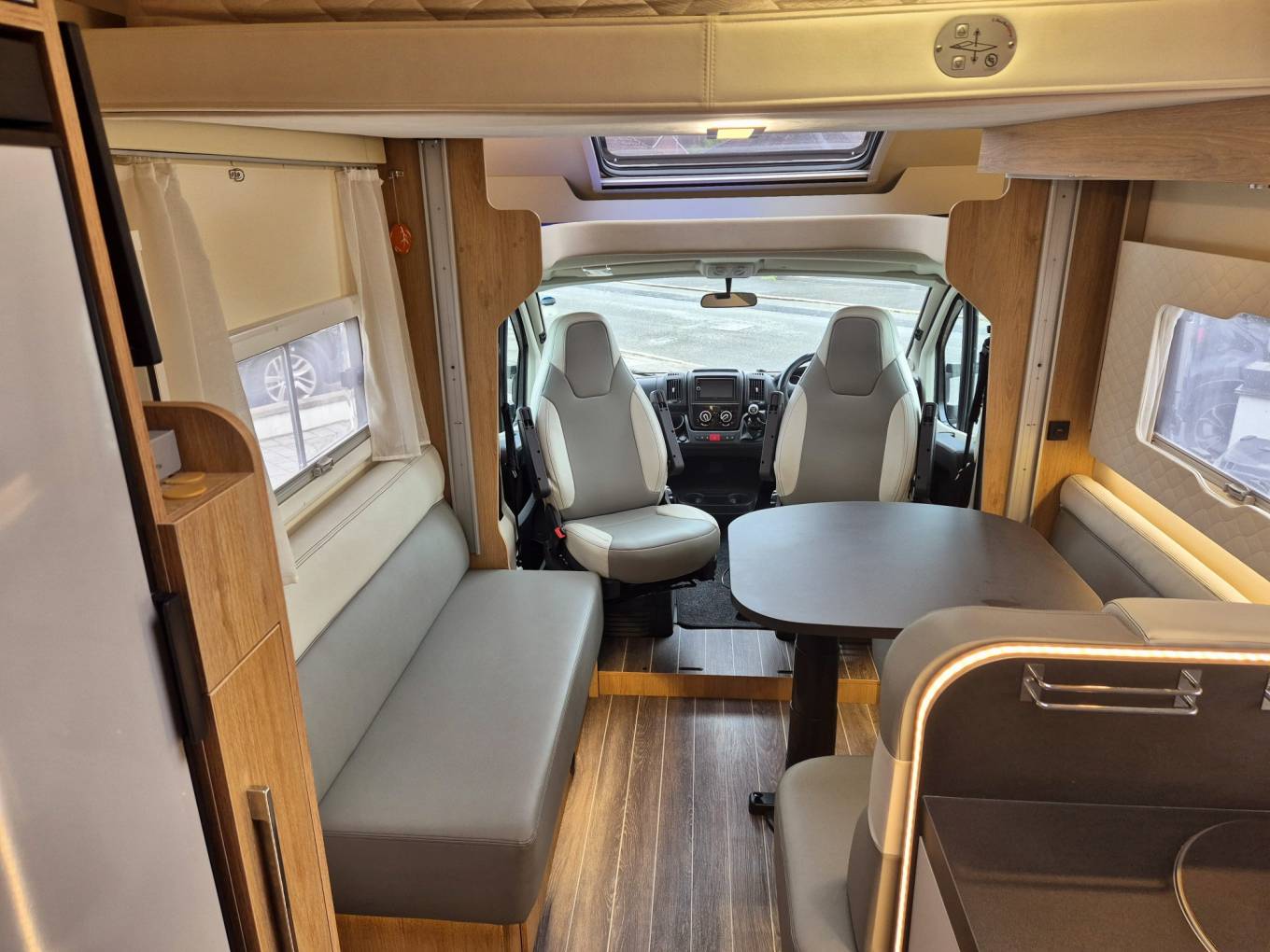 This motorhome has been well looked after and comes with lots of extras. Starting at the rear we have the large wash room with a sink and toilet with a separate shower enclosure, to the side is the large cupboard space which is accessed from the washroom. Through the wash room door on the right we have the 3 way Automatic fridge with Seperate freezer with Oven and Grill above. Opposite is the L Shaped kitchen area with a 3 burner Hob, wash basin with cupboard space above and below. Next is the seating area which seats 4 plus the 2 captain's seats swivel to seat 6 adults comfortable for Dinner around the central table that can be moved to various positions and possitioned to create the second double bed. Above is the key operated electronic drop down bed with a very comfortable memory foam mattress. The front cabin is very spacious with Concertina blinds to the windscreen and side windows. Air-con, cruise control, sat nav, Bluetooth, USB ports and a reversing camera.