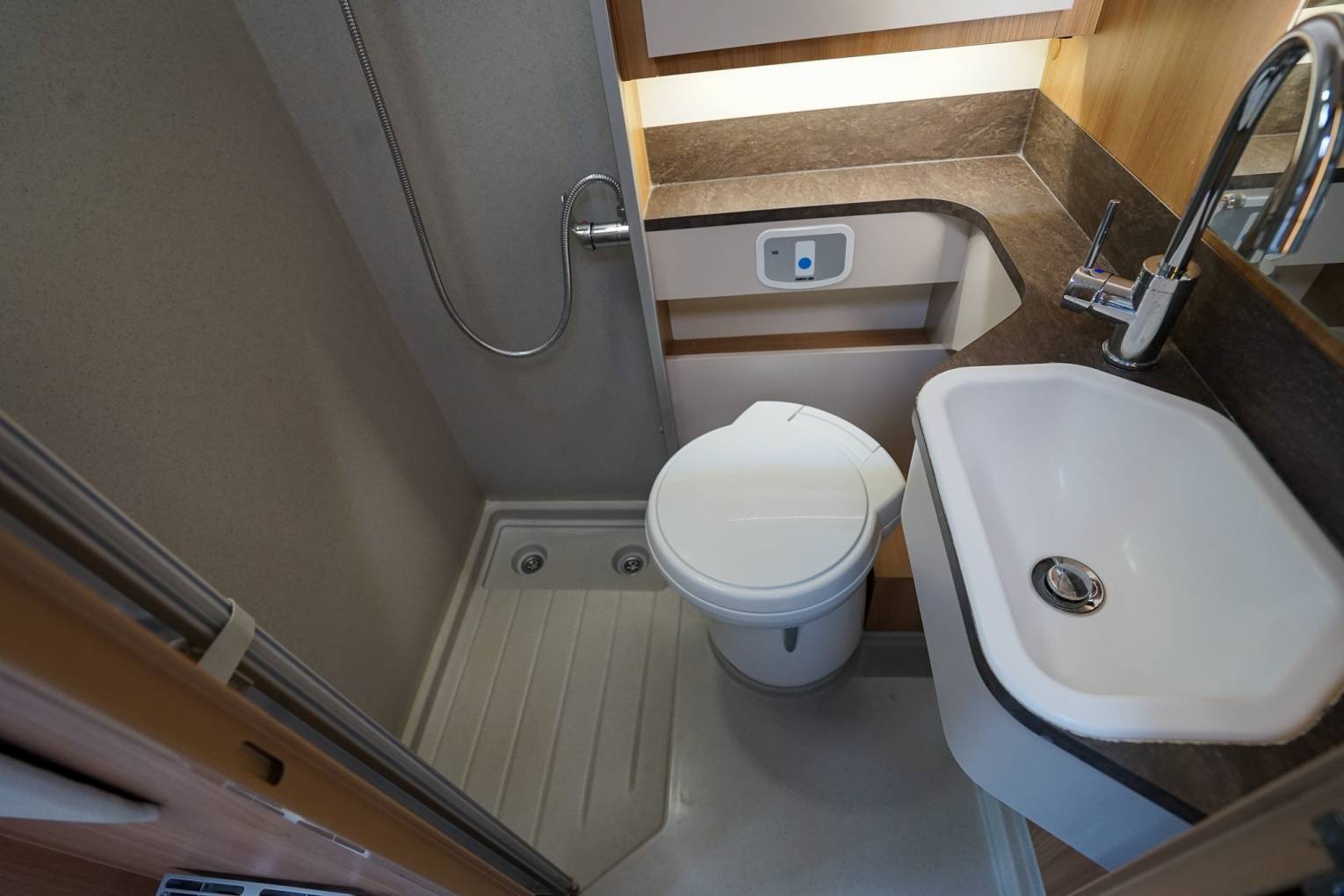 lounge sofas. The motorhome has a good sized washroom with flush cassette