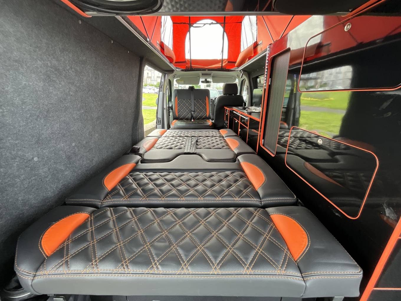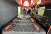 The bench seat at the front swivels quickly and easily to form a lounge seating area, facing an adjustable. clip on table next to the rear bench that forms the rock ‘n’ roll bed. A Yilkar heating system warms up the van quickly and efficiently, making it perfect to use all year around.