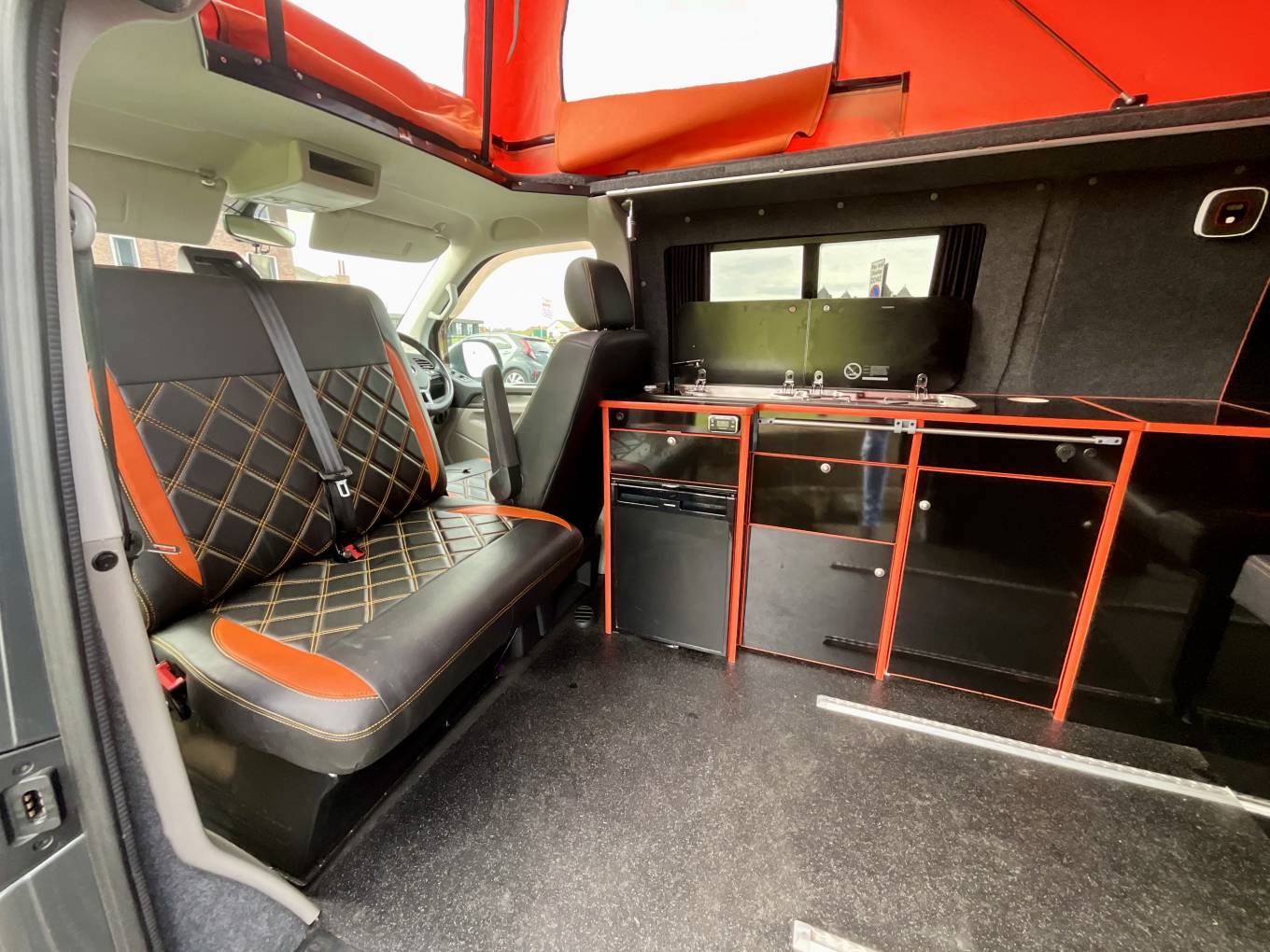 The campervan comes professionally converted by Vancon Conversions based in the South West, and comes with a fantastic specification. This includes a Skyline panoramic pop top, tow bar, leisure battery, gas bottle with locker and more.