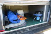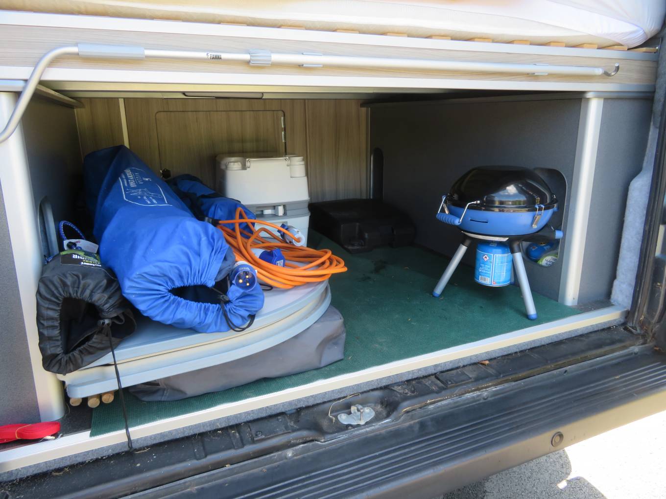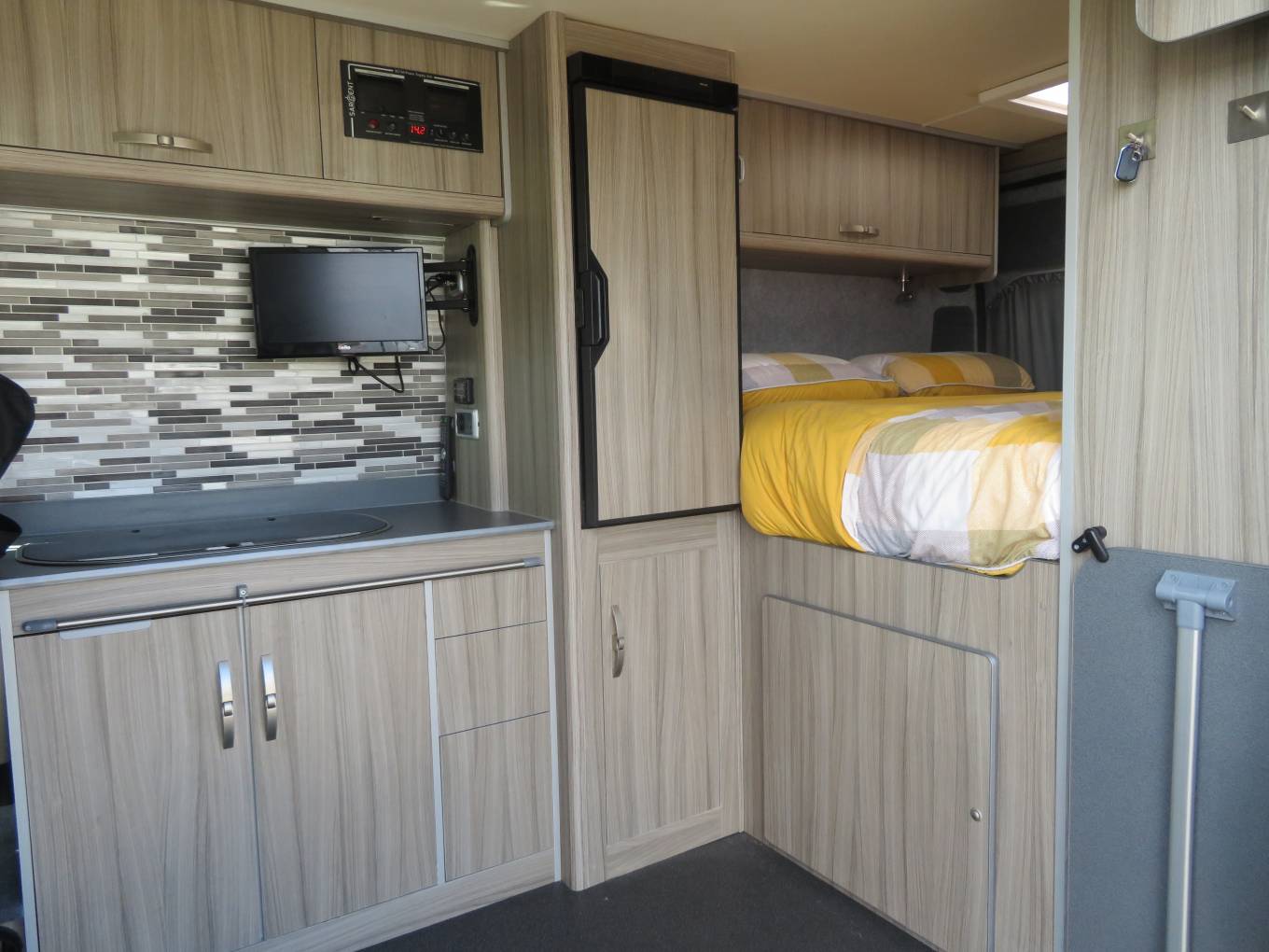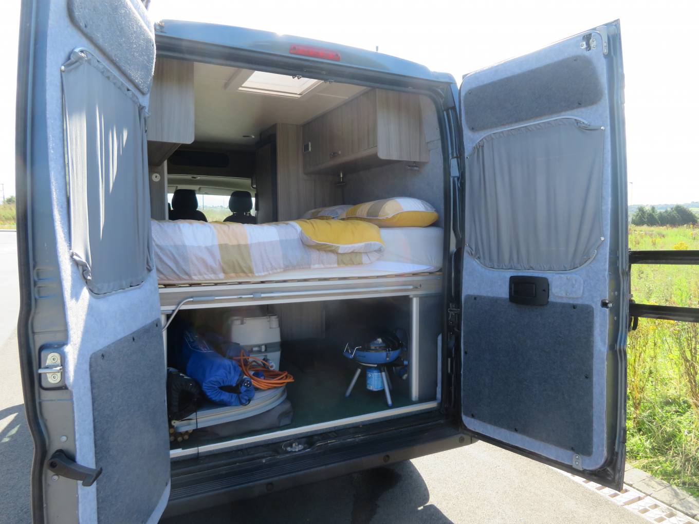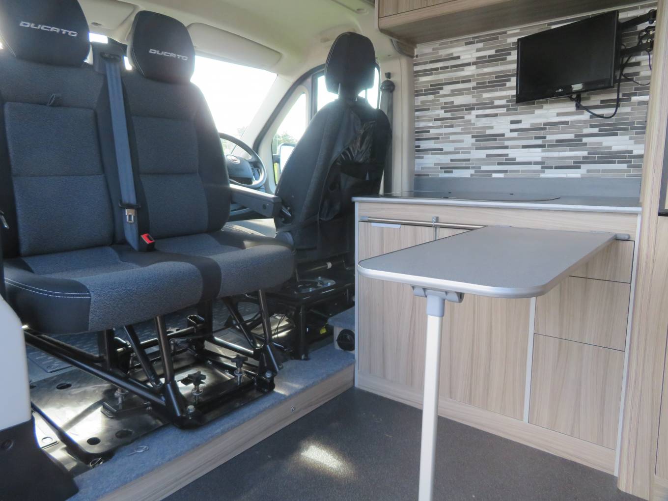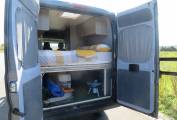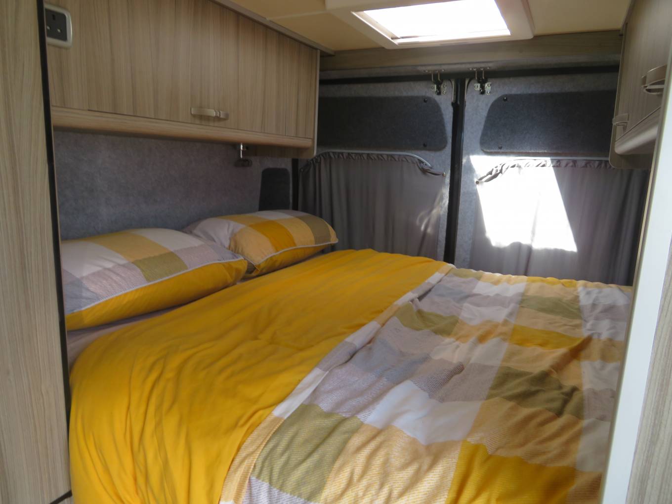 The conversion has been professionally done by a local company to a high standard and comprises of a fixed transverse bed at the back with lots of storage below, a rang of storage cupboards, Sink and hob, Tall Fridge, Diesel Heating,Tv solar panel, Alloys, Bike Rack, Swivel Front twin seat and Awning.