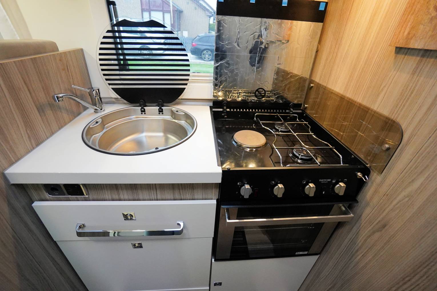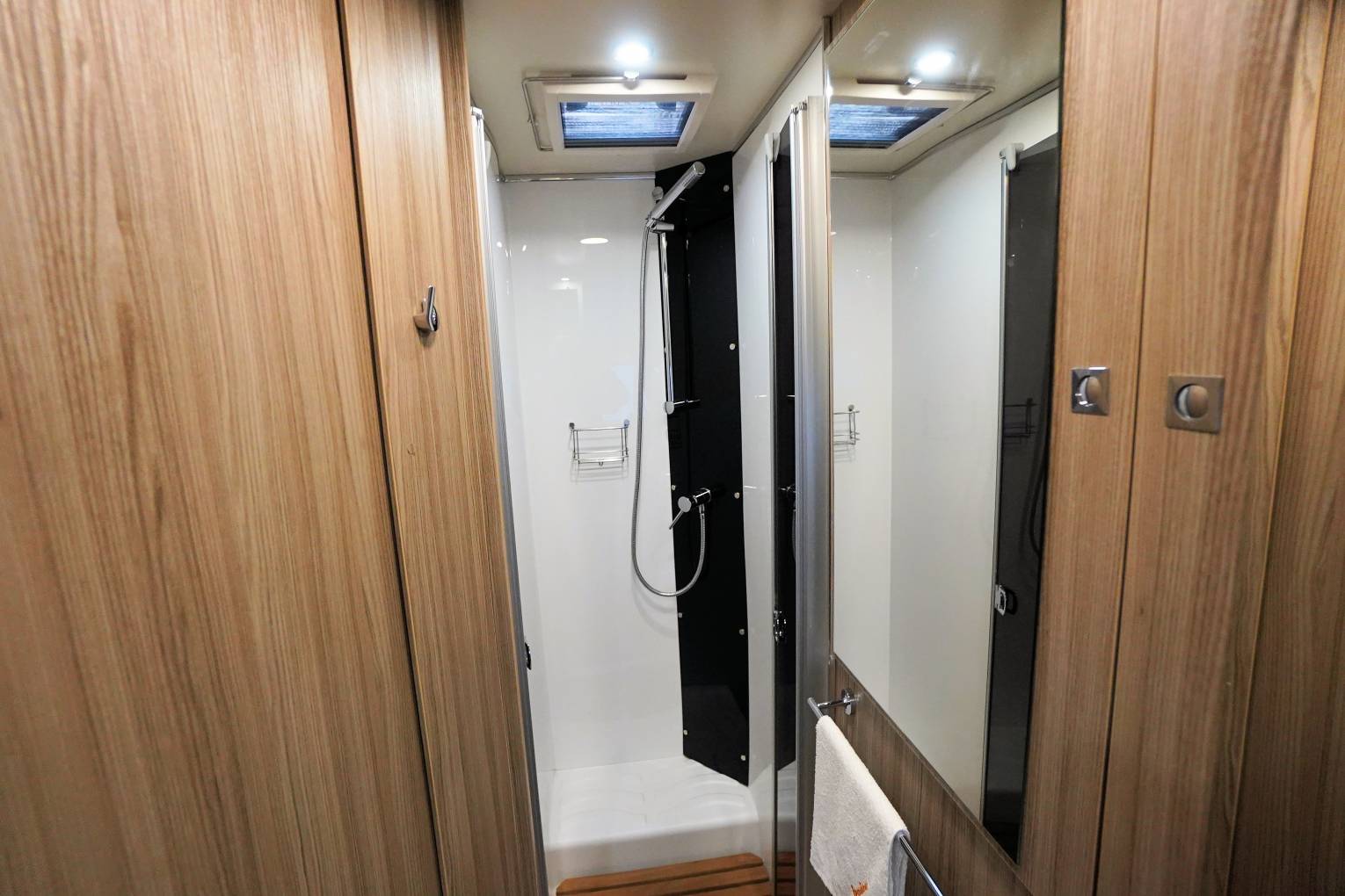 • Electric drop-down bed over the lounge that can be left high with access using the ladder or brought down lower to allow access to the bed using a small step.