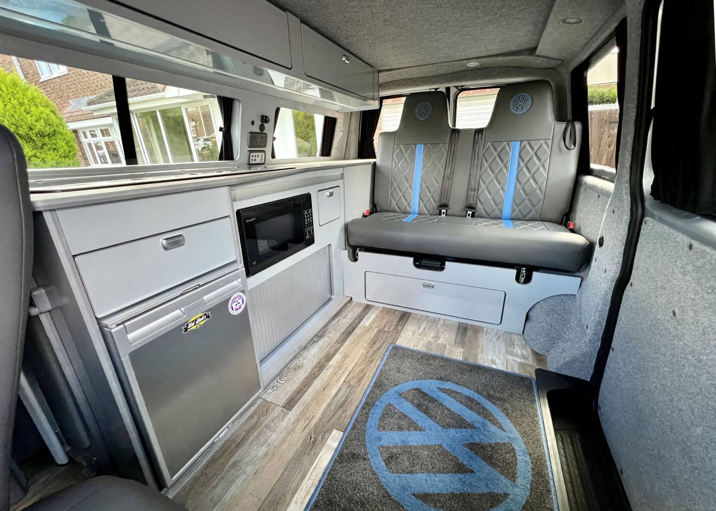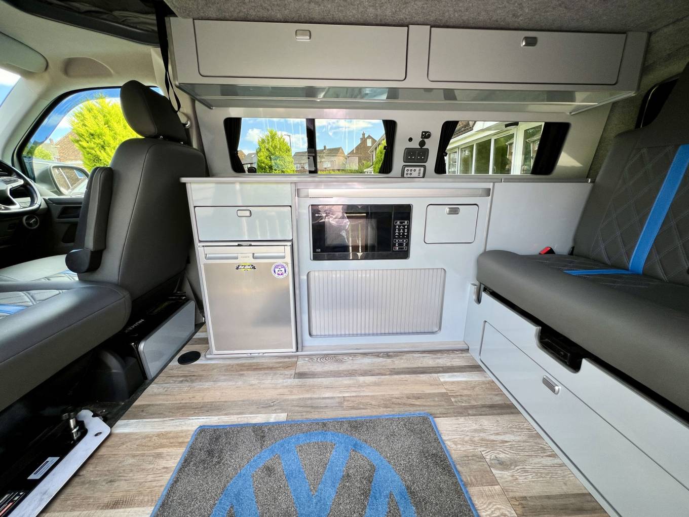 Beautifully presented 4 berth, 5 seatbelt VW T28, professionally converted by highly rated Acura Conversions of Hartlepool in 2023. The Executive conversion is the highest specification from Acura, including a window fitted on the off side rear to give rear passengers the best view when travelling. Other features include Planar diesel heater, solar panel, onboard fresh water tank, reliable Sargent 12v and 240v power management system, microwave oven, Dometic twin burner hob and sink plus fridge with freezer box.