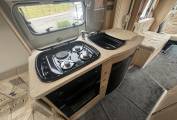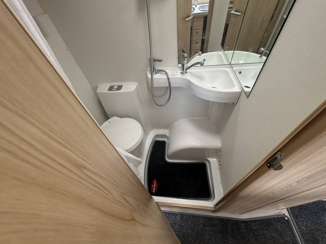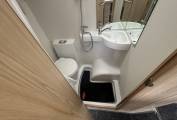 The Elddis Majestic 195 is a very comfortable motorhome to sleep in with one large double bed made out of the rear lounge sofas and another from the central dinette. There is also a decent sized washroom featuring a Thetford Flush cassette toilet, vanity sink with cabinet underneath and shower with screen.
