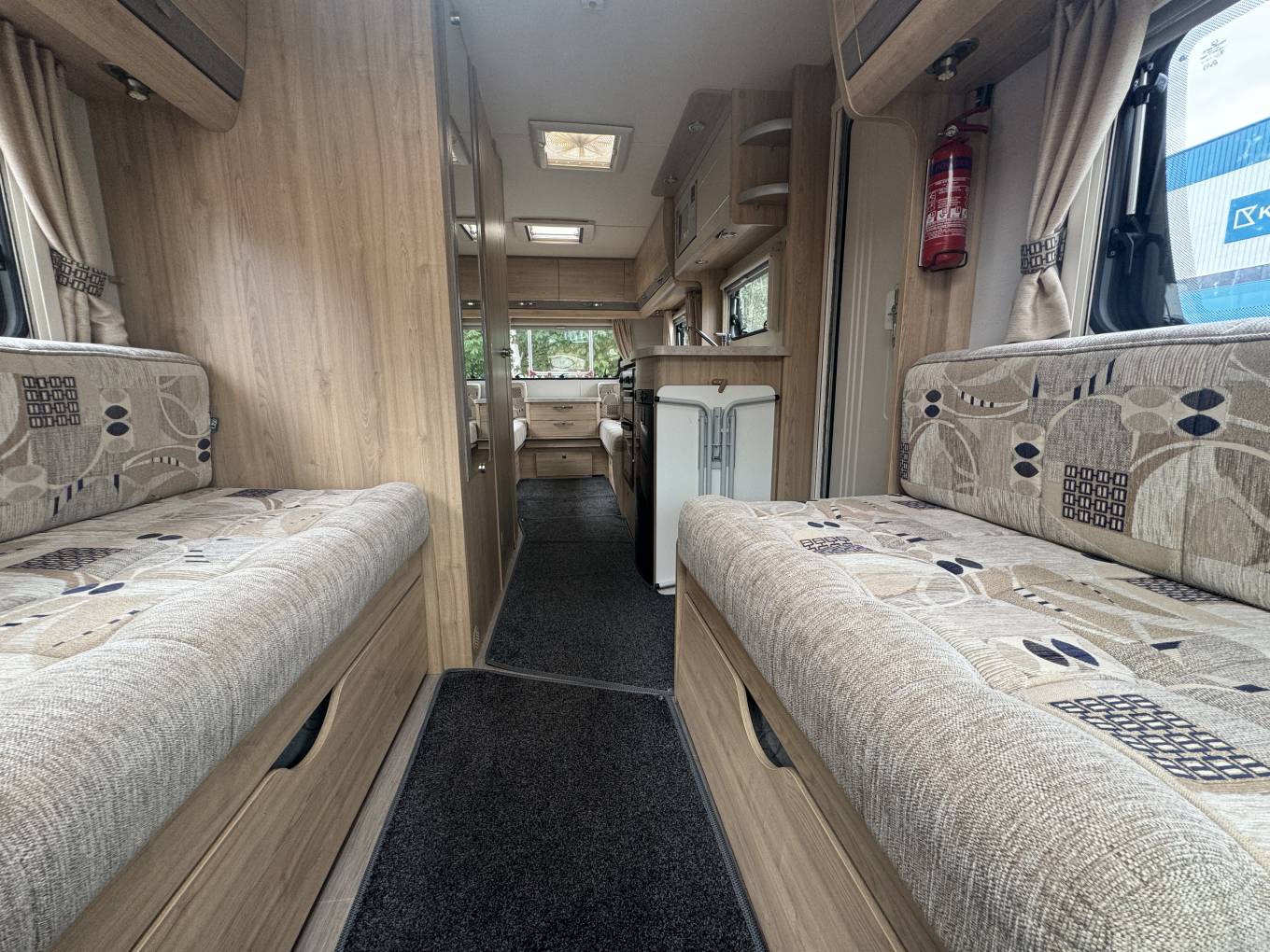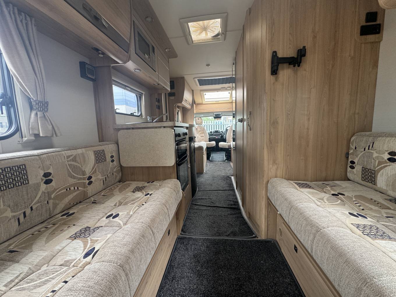 The Elddis Majestic 195 is built on the ever popular Peugeot Boxer chassis and this motorhome has a 150 bhp 2.2L engine with a 6 speed gear box, giving you all the power you need. The motorhome comes with cab air conditioning keeping you cool on your way to your destination, rear view camera and cab blinds. There is a solar panel fitted and TV brackets mounted to the walls.
