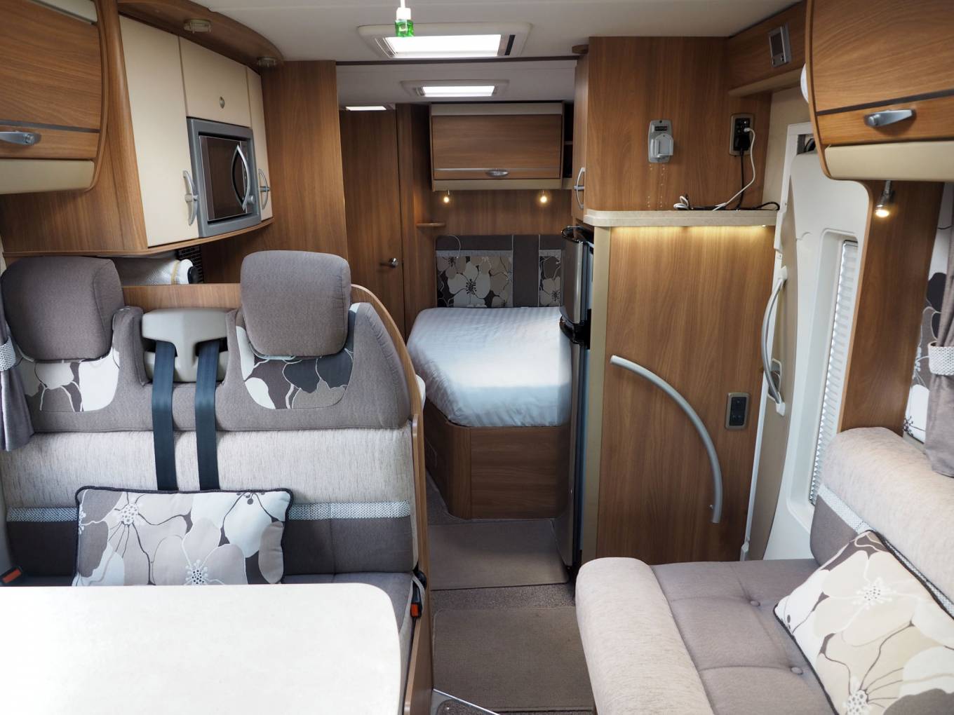 Based on the Fiat Ducato 3 litre 160 bhp engine and AlKo chasssis, the Bolero also has a towbar with a maximum towing capacity of 1750KG. The cab features integrated night blinds, reversing camera, cab air conditioning and cruise control.