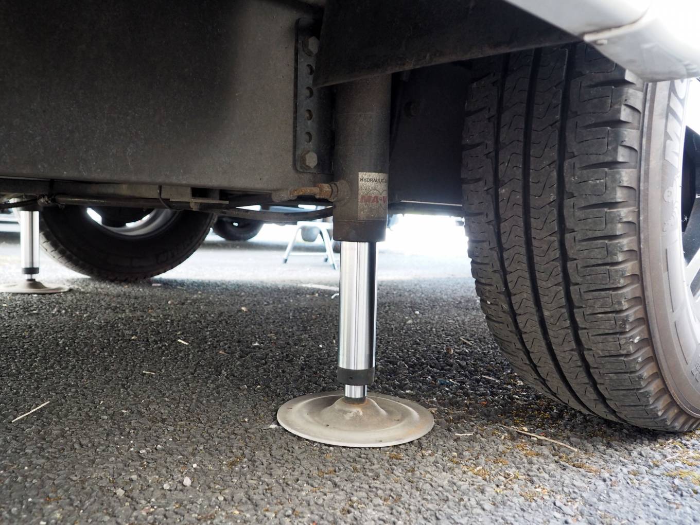Oustide features include roll out sun canopy awning, 2 bike rack with storage box, solar panel, recently serviced fully automatic hydraulic levelling system, external storage lockers, gas BBQ point, alloy wheels and chromed mirror covers.