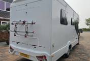 It also comes with some fantastic extras like an awning for enjoying the outdoors, a bike rack, Gaslow refillable bottles, a 3000 watt inverter, a roof-mounted satellite system for TV and brand new carpets throughout to keep it looking fresh.