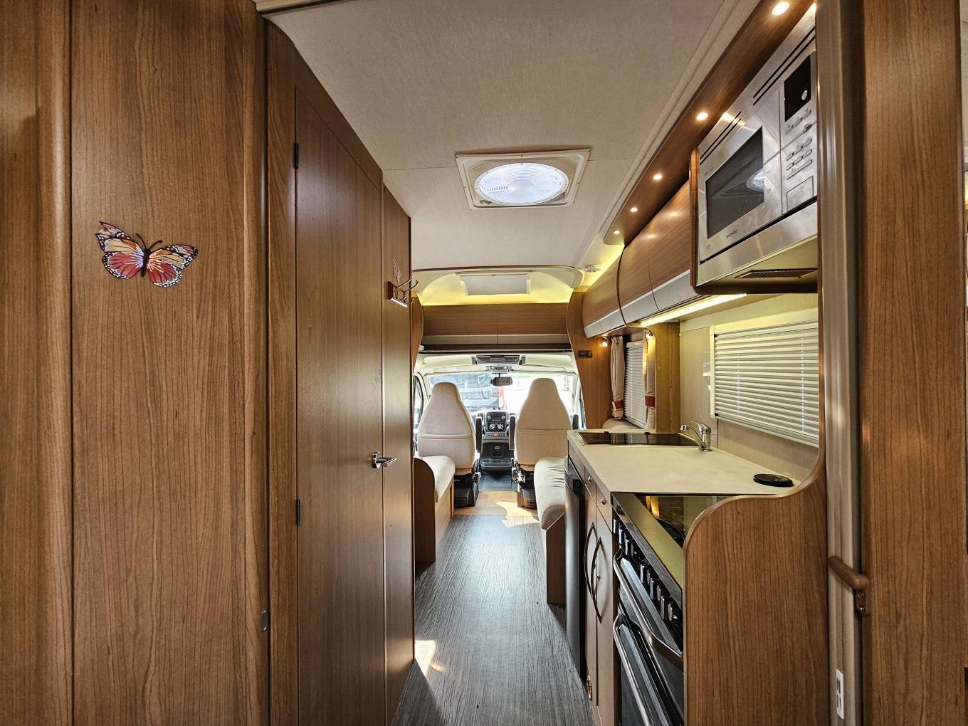 There are plenty of useful features to make life easier including double-glazed windows with blinds and flyscreens, an electric step, and a Bluetooth radio with steering wheel controls. Driving is simple thanks to cruise control, ABS brakes, airbags, central locking, rear parking sensors and a reversing camera to help you park with confidence.