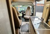 The toilet and shower / wash room is accessed by the tambour door, and opposite this is the galley kitchen complete with two burner hob, sink, fridge and plenty of storage space, the van has full habitation blinds and fly-screens, the sliding door also has a fly-screen.