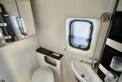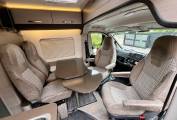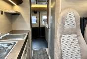 As you enter the van by the electric step you will see the two individual comfort traveling seats and dinette table, both front captains seats swivel to the dining position and the table can be extended if required. Behind the dinette is the wall mounted Avtex Tv and in the locker above is the satellite receiver box, Heating is supplied by a 6Kw Truma heating system.