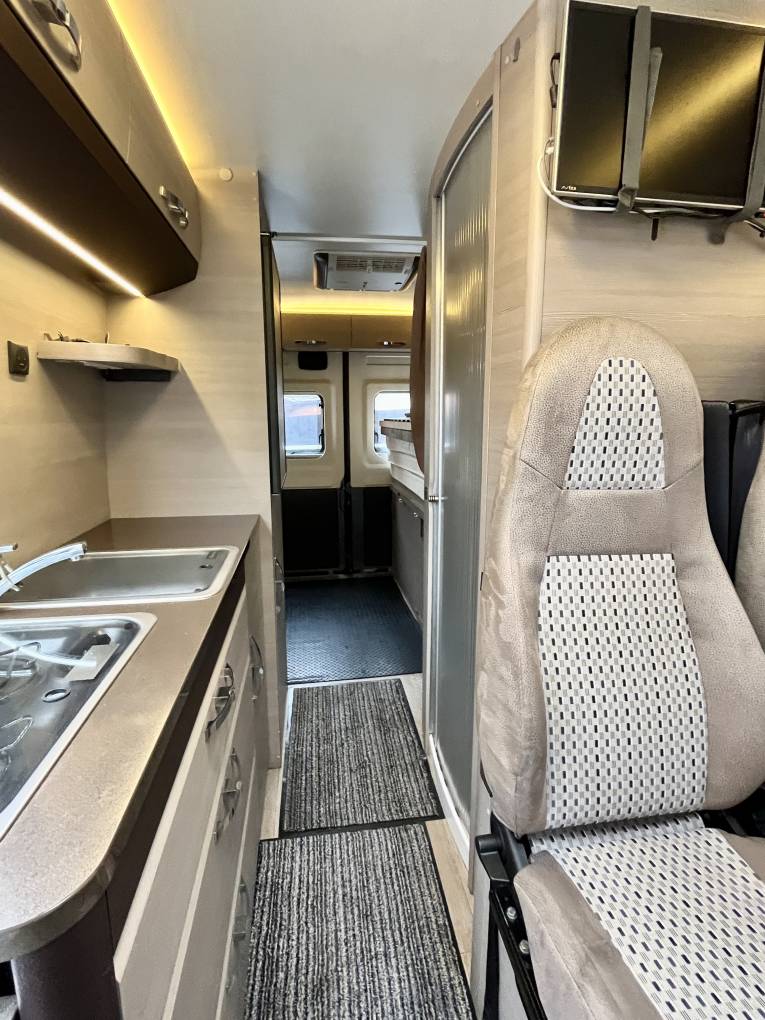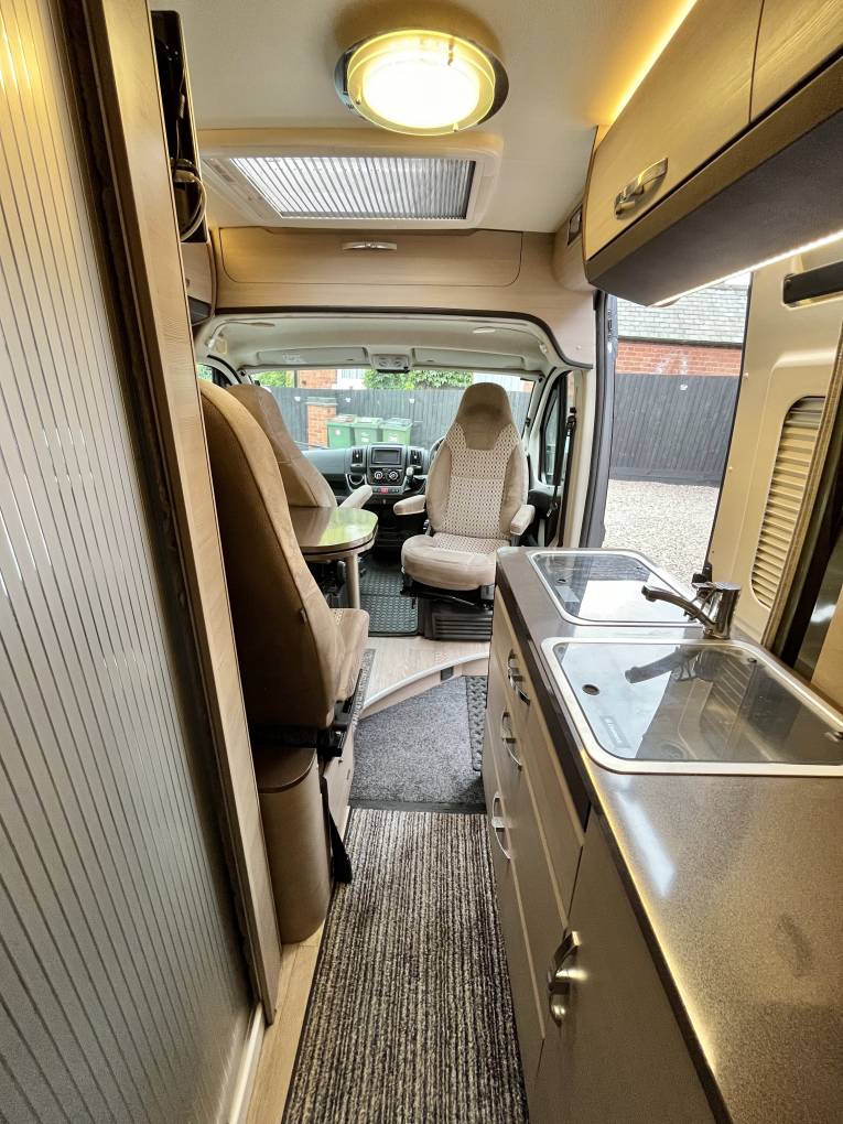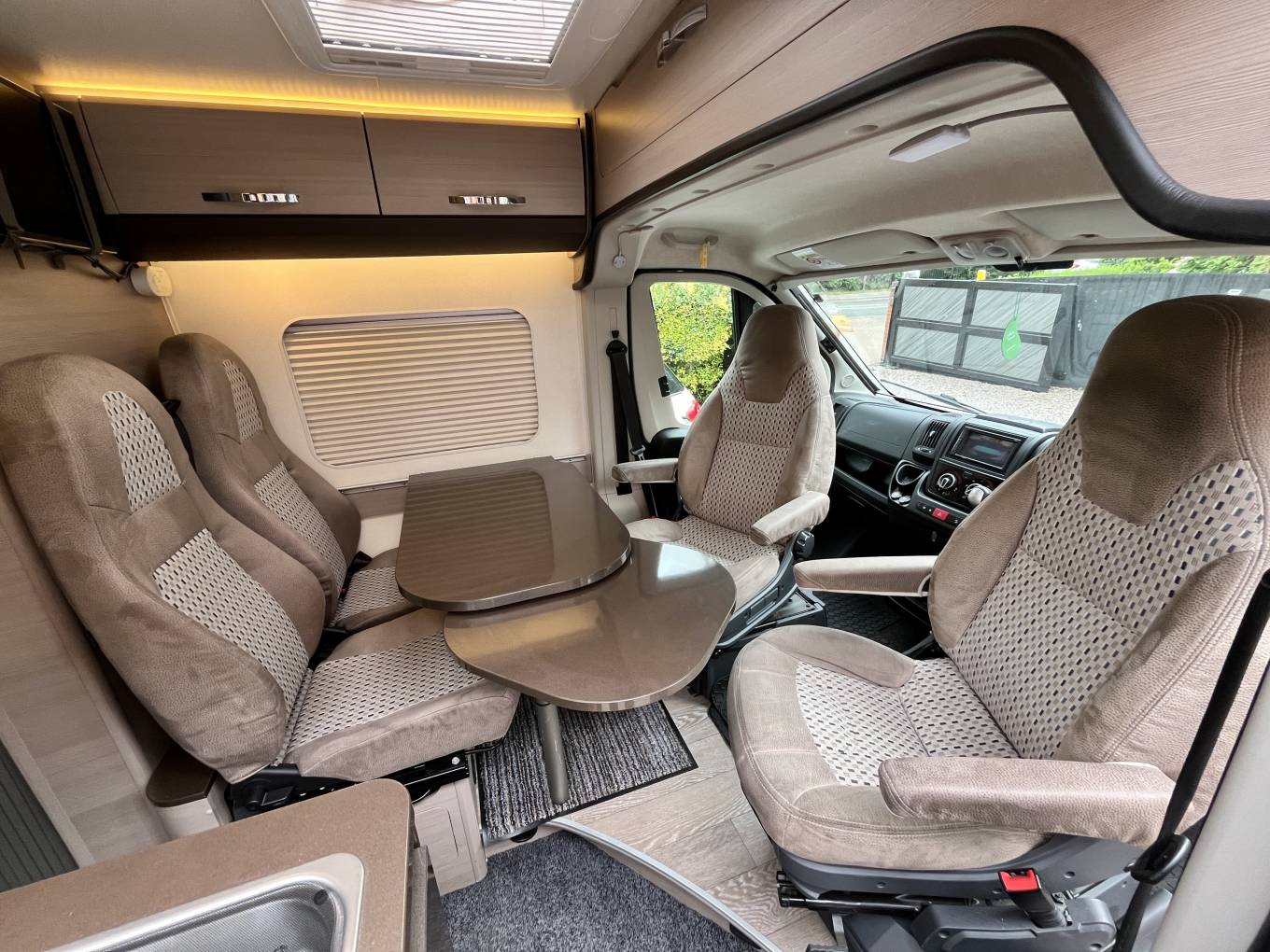 In the cab area you have two captains seats, cab air-conditioning, cruise control, media system with rear reversing camera, satellite navigation and apple carplay, the vehicle is a Fiat chassis with a 150 Bhp, 2.3L diesel engine mated to an automatic gearbox.