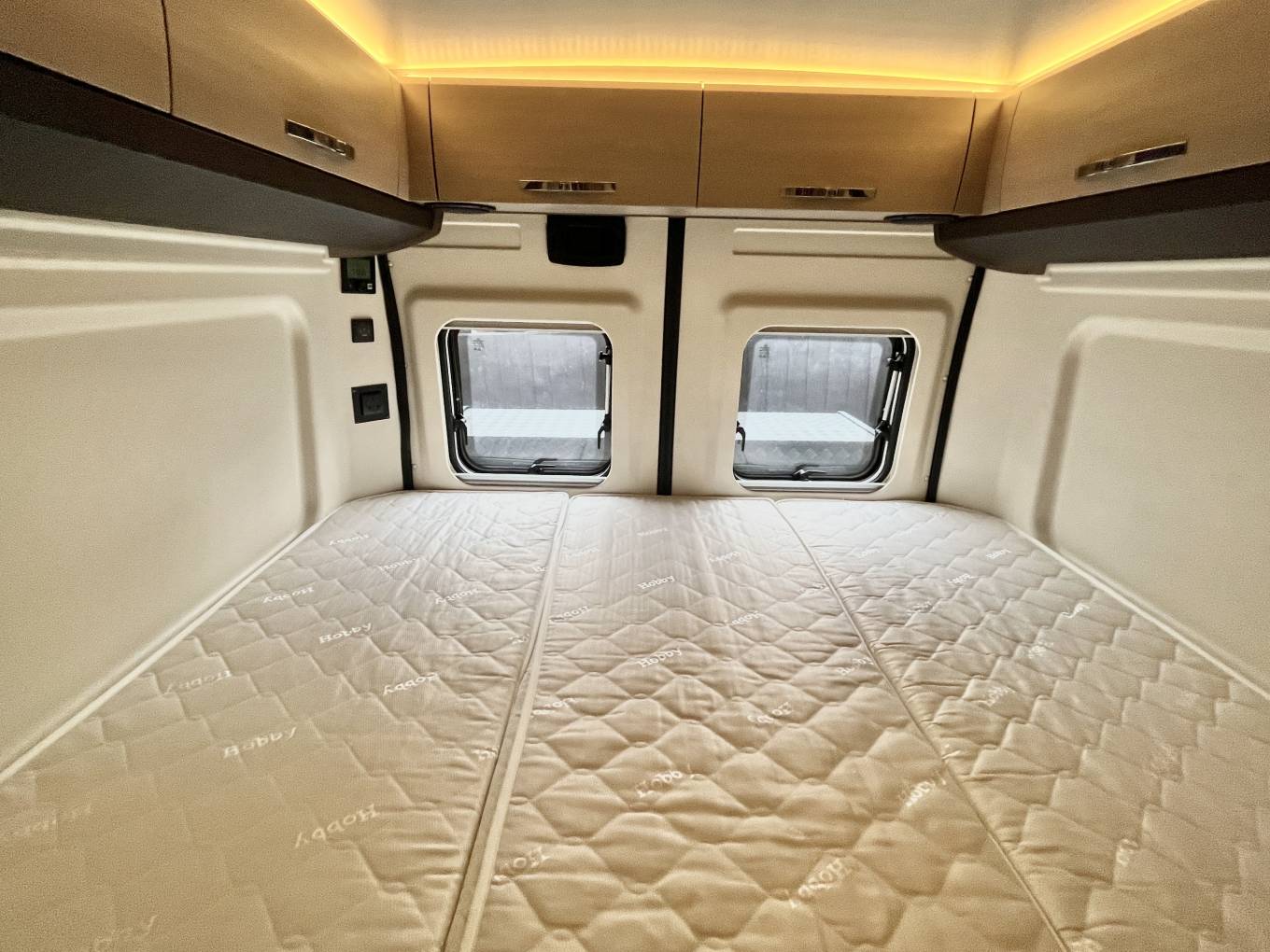 Finally to the rear of the van you have the bedroom area, this can be used as two singles or a large double with sufficient space underneath for additional storage, the bed area can be easily converted to a garage space when necessary.