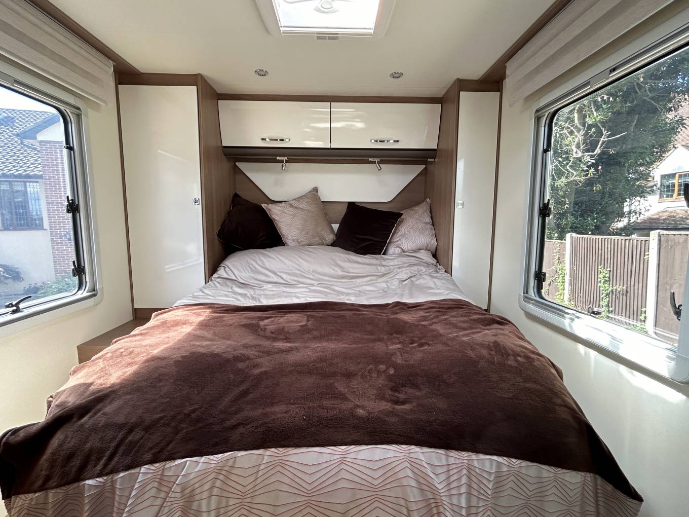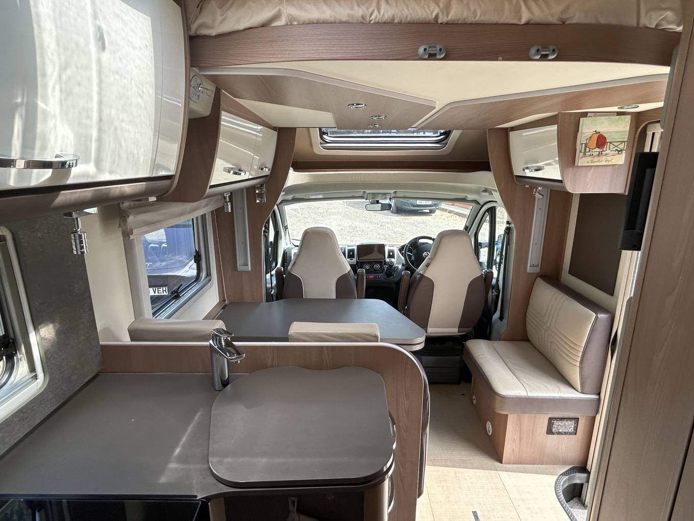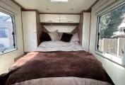 One of the many standout features of this motorhome are the sleeping arrangements. At the rear you have the ever desirable island bed which means if one of you wakes in the night and needs to use the bathroom you don't have to climb over your partner. The other 2 sleeping berths come courtesy of the electric drop down bed over the lounge. In the morning you simply retract the bed up into the ceiling freeing up your much needed floor space.