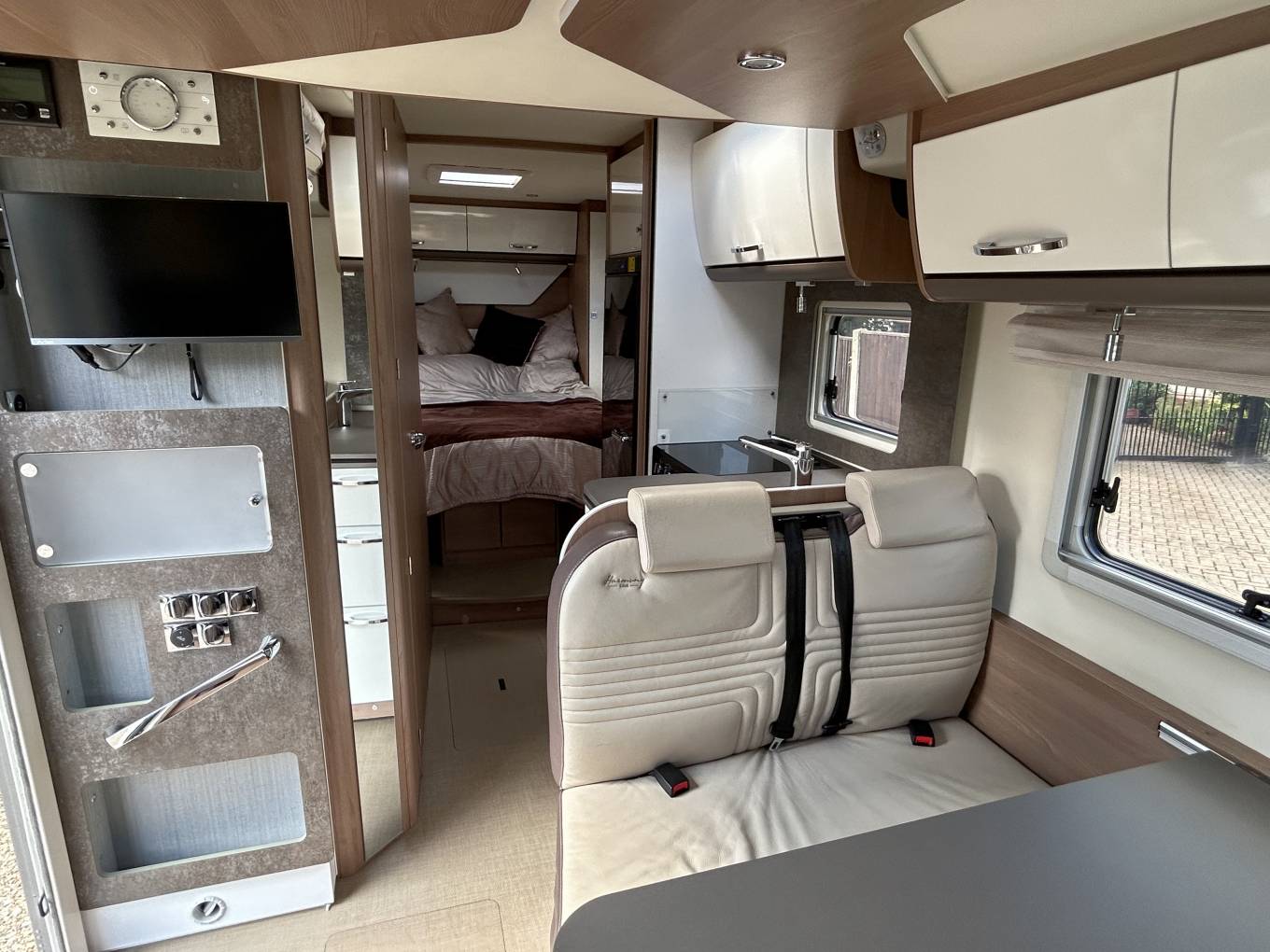 If you are adventurous and fancy a spot of wild camping this motorhome is geared up for it. It has a solar panel and two leisure batteries so you should be able to disappear into the wilds for days on end. This motorhome also has rear air suspension which provides a really smooth ride and stability when driving. The owner at great expense has also added an L & B self-levelling system giving you the ultimate in stability when you are parked up. At the rear is a cavernous garage so you can pack away all your favourite belongings and go long term touring if you so wish.