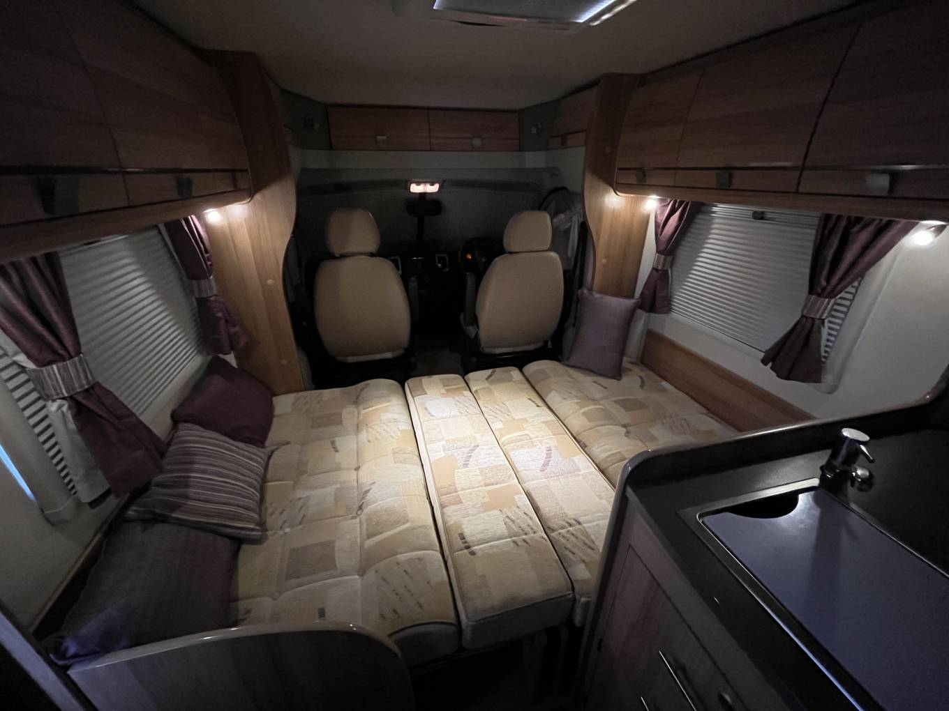 into a double bed. Additionally, there is a fixed double bed in the rear,