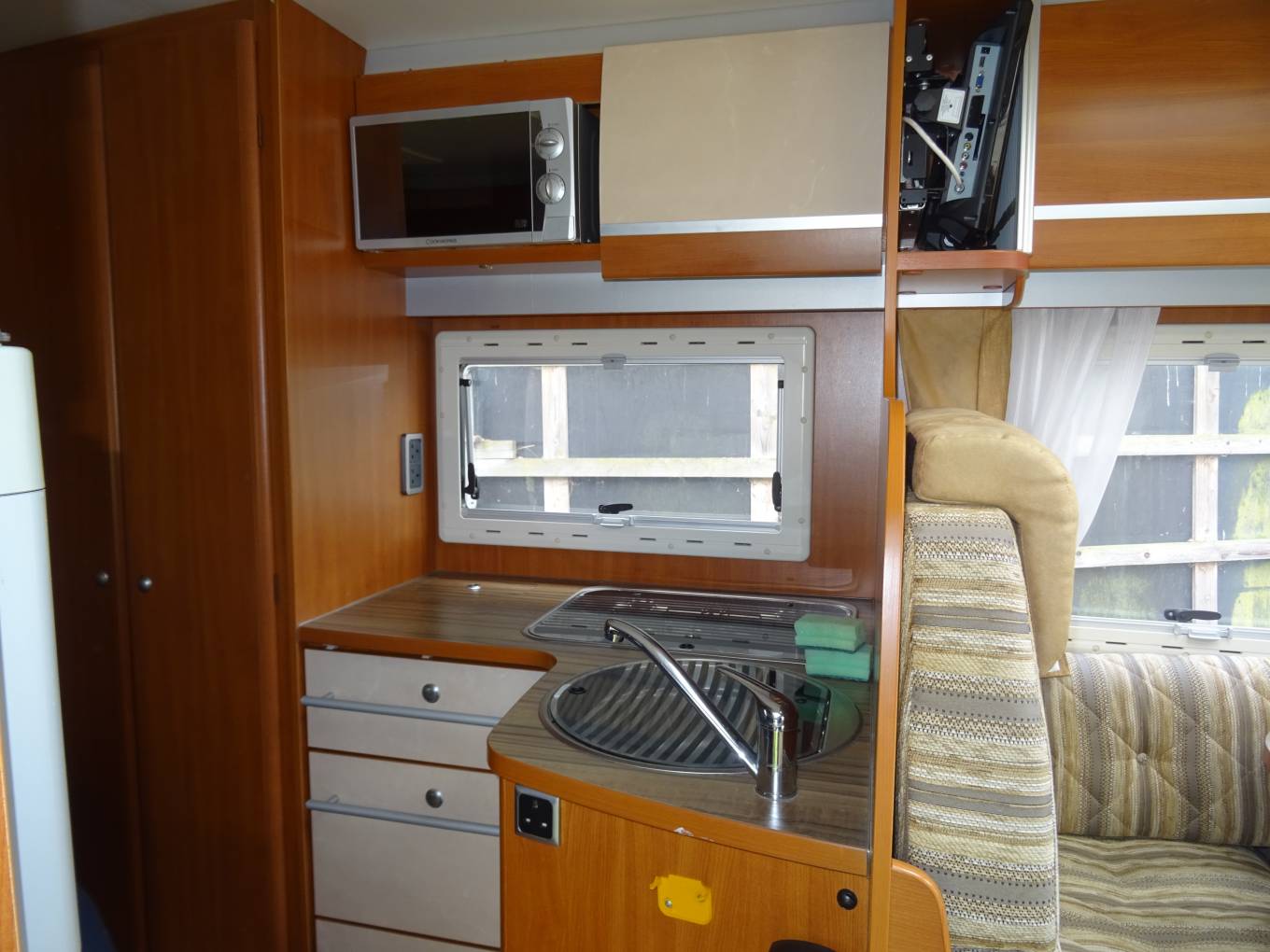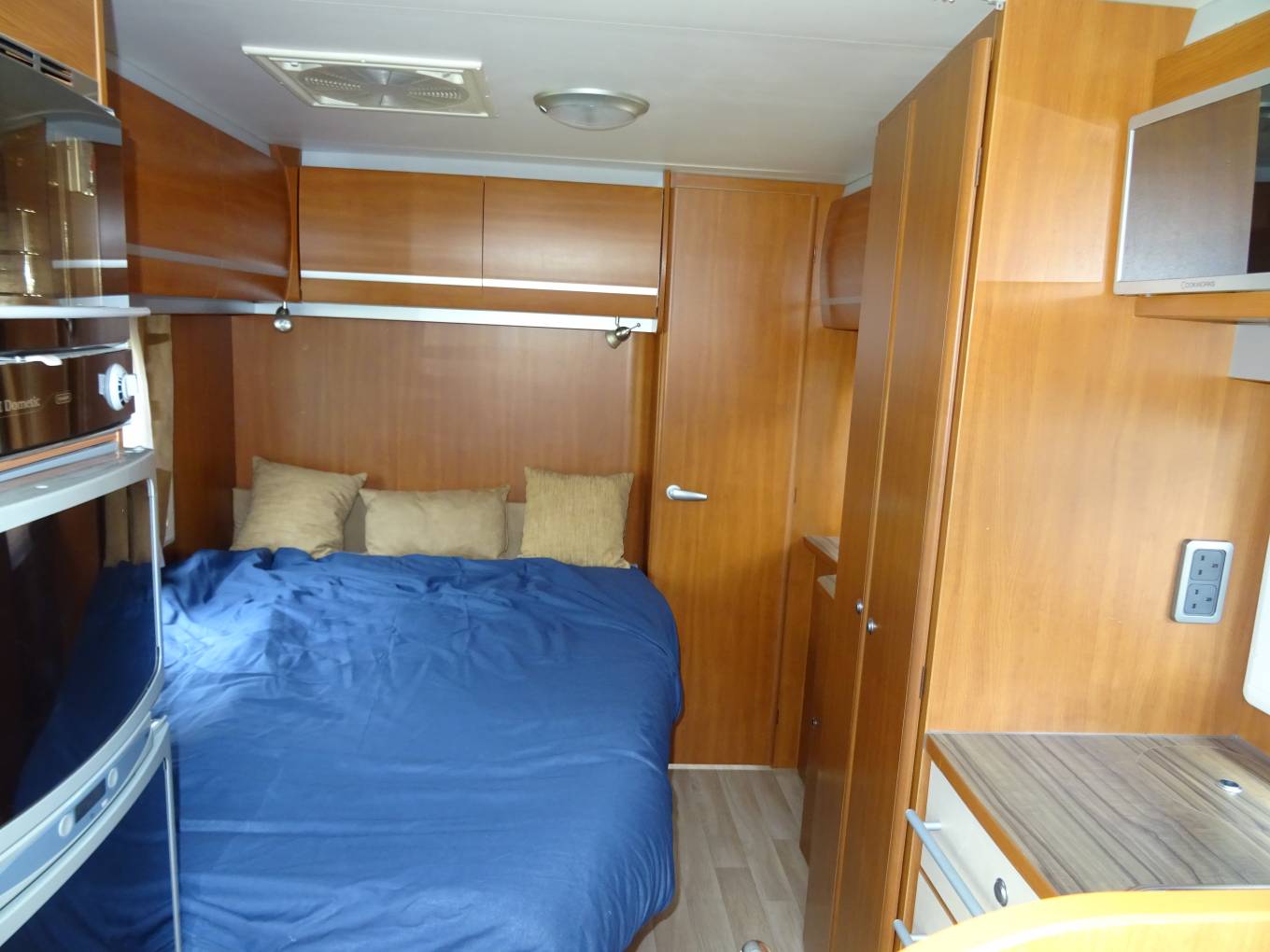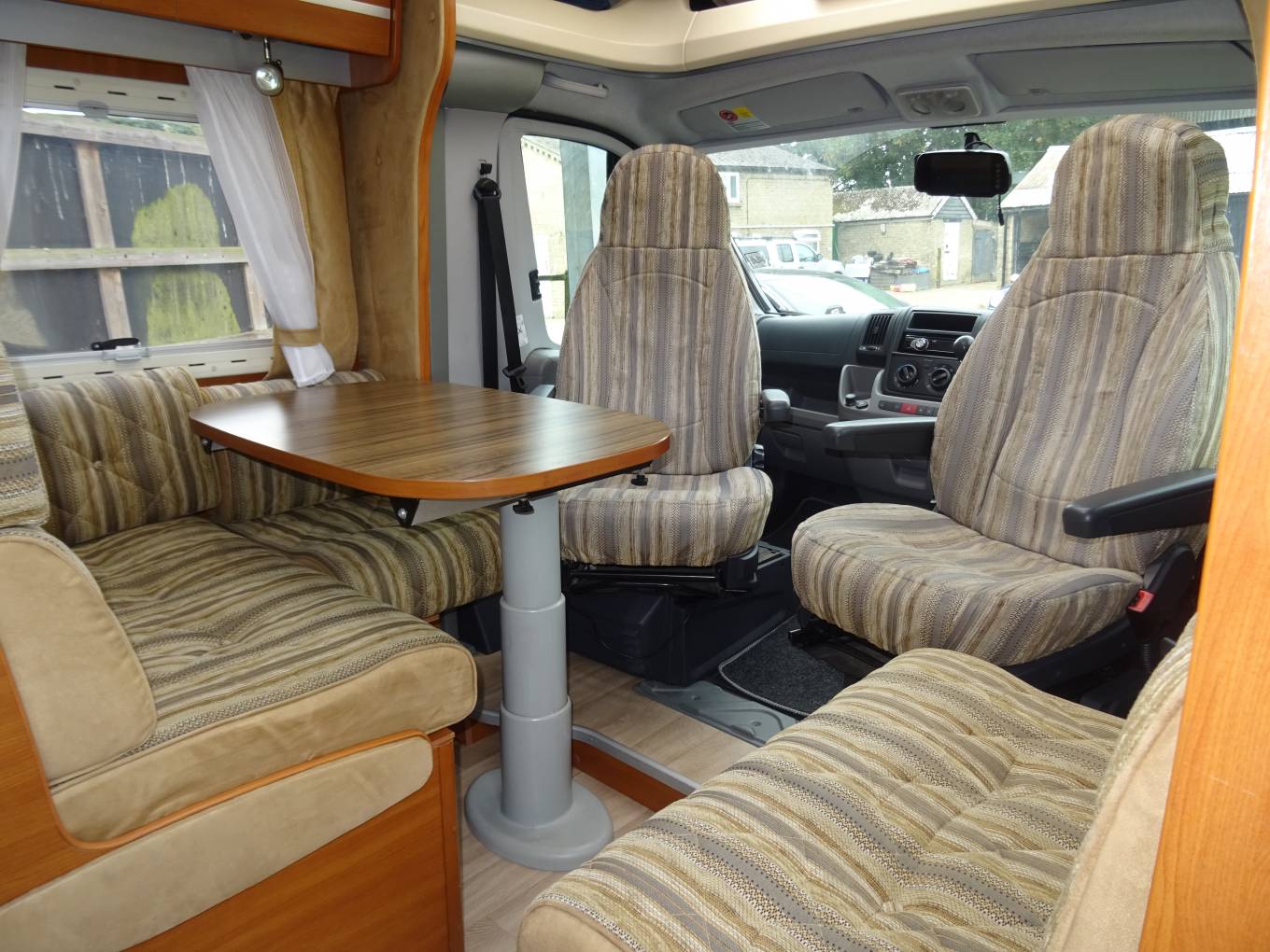 Chasson Welcome 76 3 berth 2009 motorhome with rear fixed double bed and 4 seat belts. Built on the fiat chassis with a 2.3cc diesel engine. It is right hand drive, with 6 speed manual gearbox. On entering the motor home through a side door, in the middle you have the well equipped kitchen area containing a 3 ring gas hob with a glass lid, high level grill, a large fridge freezer and a sink/worktop area. Moving to the front of the motor home is a spacious lounge area consisting of removable dining table which also converts into a small bed. Both of the front seats swivel making it a nice socialising area and dinning area. One of the sofas is front facing with two 3 point seat belts. Moving to the back of the motor home there is a fixed double bed with good storage underneath and ample high level storage cupboards and wardrobe. Moving to the rear of the motorhome is a spacious light and modern washroom, consisting of toilet, separate shower area, and window. Each window has fly screens, blackout blinds, curtains. Outside the Chausson there is a awning/canopy. The motor homes comes with cab air conditioning, solar panel. There is a sunroof in the centre of the habitation area. please ask for pictures.