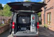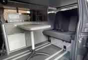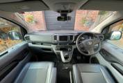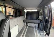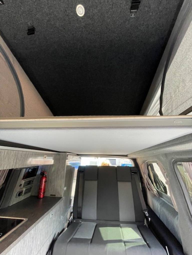 This luxury campervan will sleep 2 people above in the pop top roof and 2 on the Rock n roll bed. Good storage lockers built into the habitation area. Kitchen area has 2 burner gas hob, sink with mixer tap, stowaway table, Eberspacher Diesel heating system and the fridge will run off 230v or 12v.