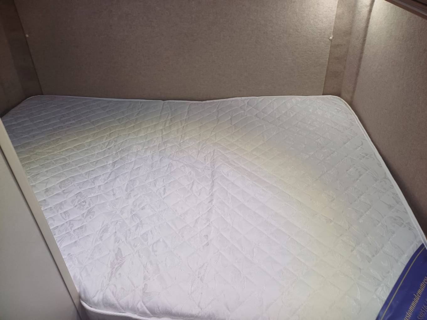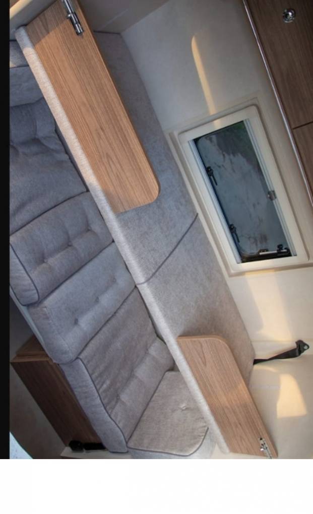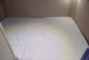 To the rear of the vehicle you have the double fixed bed with reading lights and storage above and below. To the rear you have the spacious garage compartment underneath the fixed bed.