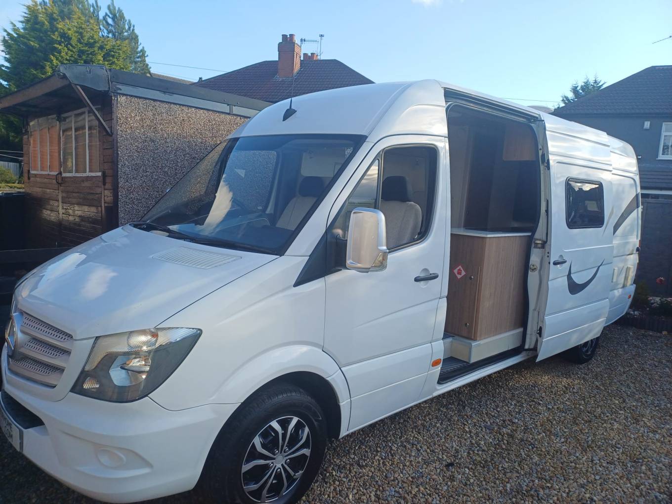 This Mercedes Sprinter has been well looked after and also comes with 2 rail bike rack, Chain Driven, Thermostat Controlled Blown Air Heating system, 110amp Leisure Battery, 10 Litre Trauma water tank, 80 Litre fresh water tank, 2 Sky Lights with fly screen and blackout blinds, Bluetooth and Media Stereo, Electric Windows.