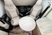 Here both cab seats swivel round and a removable pedestal mounted table sits in the centre.
