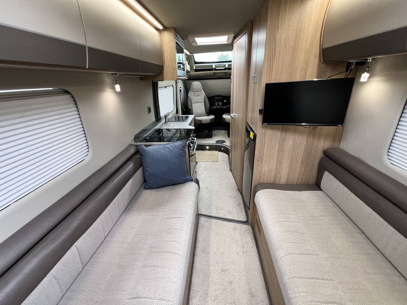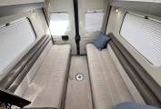 On entering via the large sliding side door (with protective flyscreen), up the electrically operated step to you left is the front lounge in the cab area.