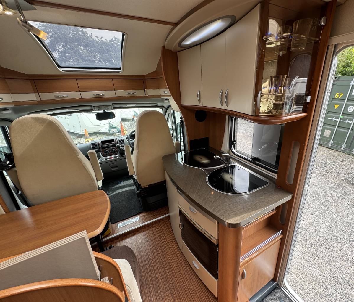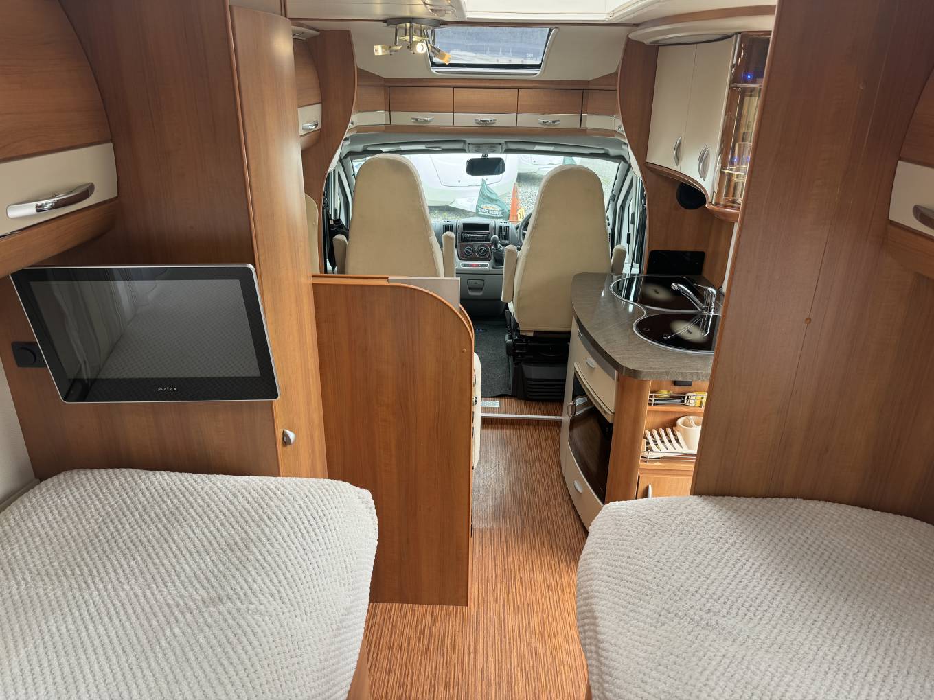 This motorhome comes with a range of modern amenities, including a TV, integrated sound system, and air conditioning, ensuring you can enjoy your travels in comfort and style.