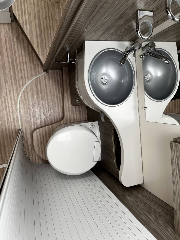 flush cassette toilet - Sink – Separate Shower cubicle with double doors.