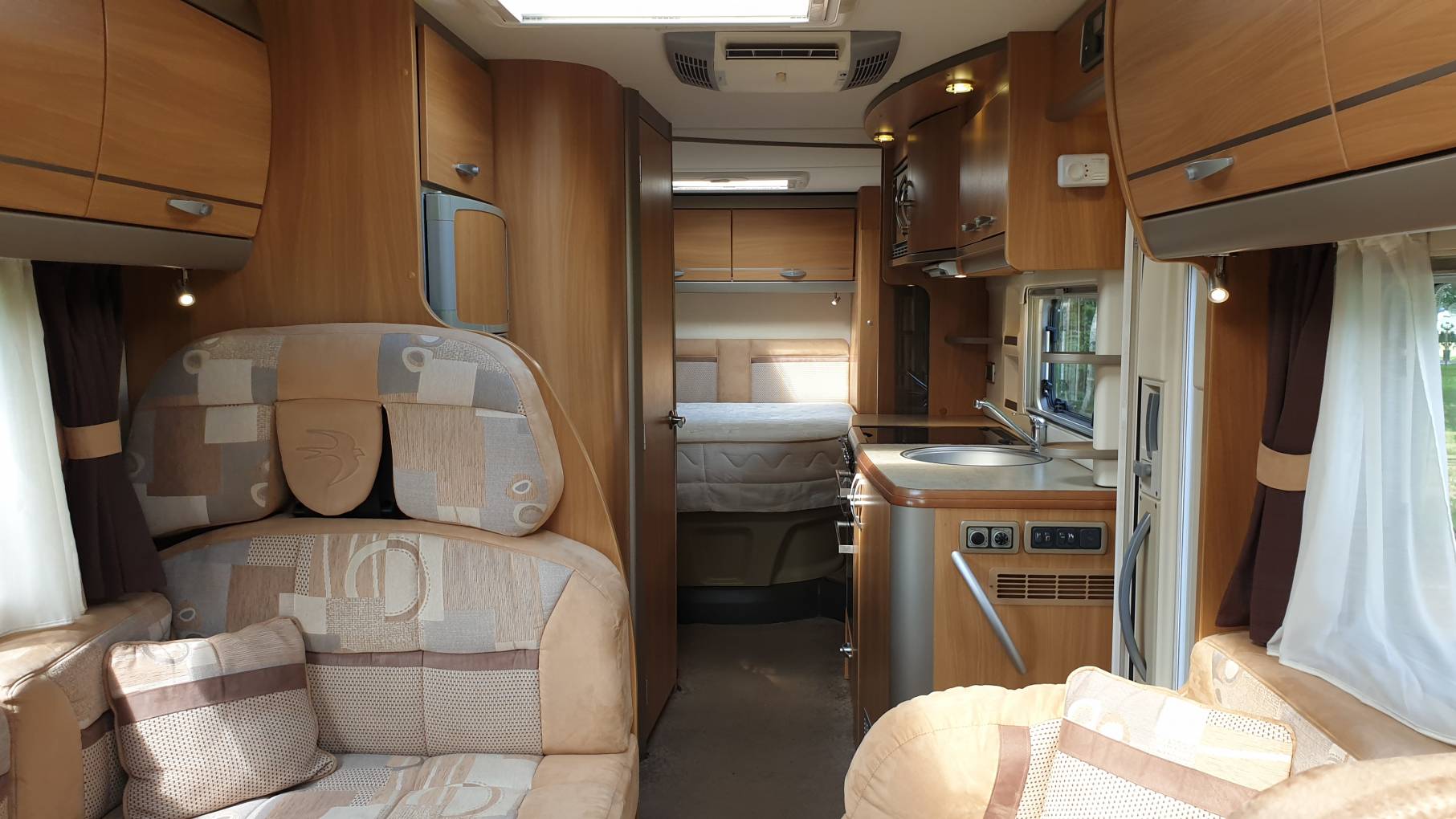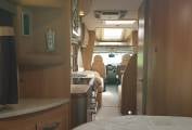 the kitchen. At the rear of the motorhome is the sleeping area with a fixed