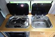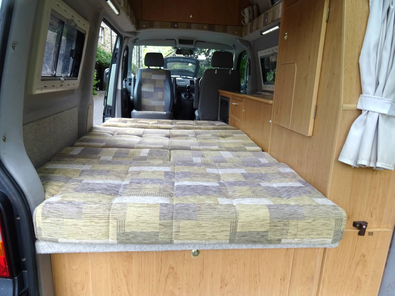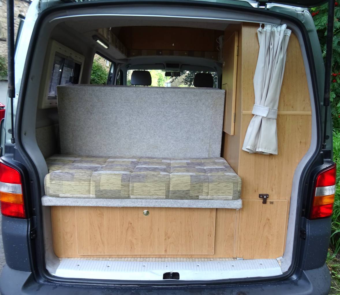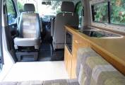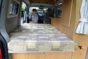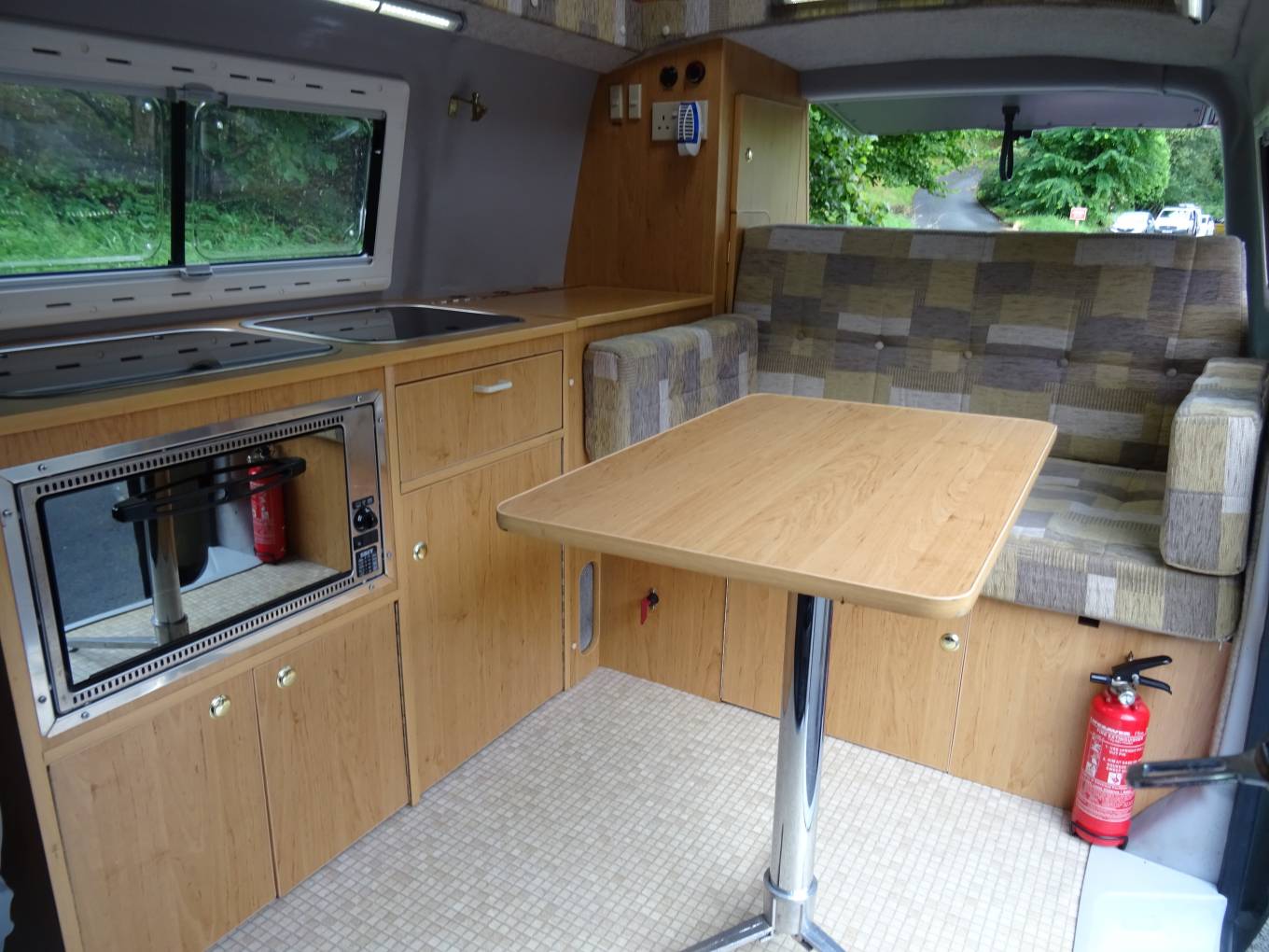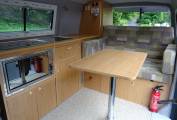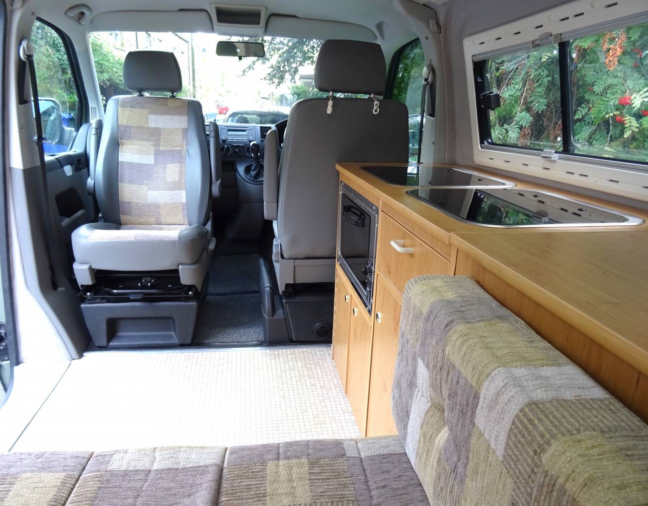 It's a 2 berth, 4 belted campervan with a R&R bed. The front captain's passenger seat swivels, and with the stow away table, creates a great area to dine/relax in once you have reached your destination.