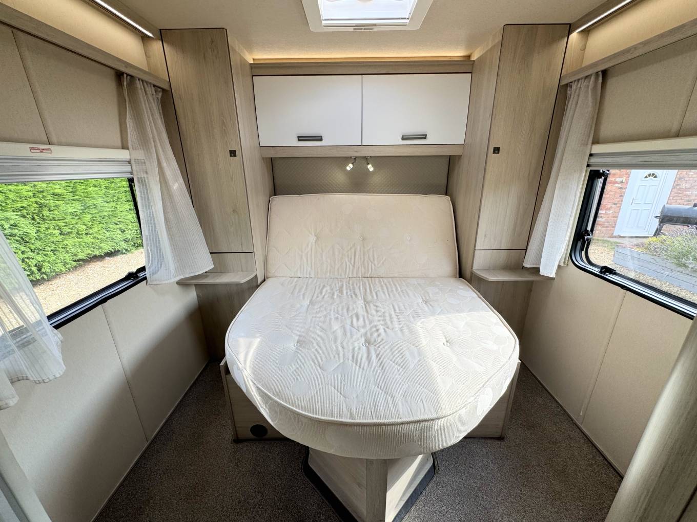 At the rear, the luxurious island bed comes with wardrobes on either side and slides back to create extra walking space, ensuring comfort and practicality.