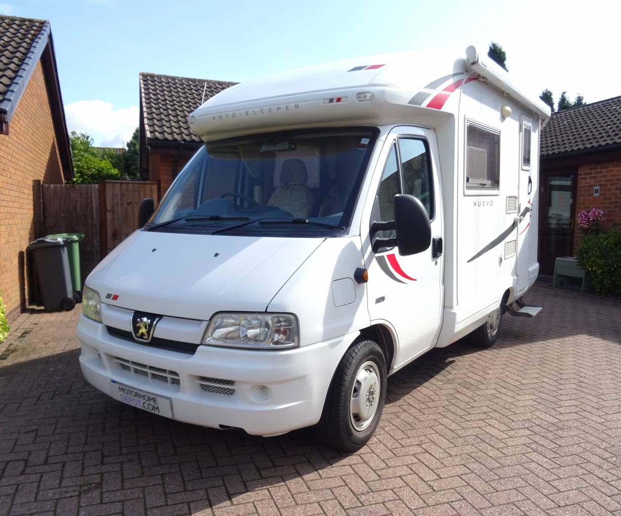 Here is a lovely example of the iconic 2 berth low profile Auto-Sleepers Nuevo in excellent condition, low mileage and two previous owners. Based on the Peugeot Boxer HDi this small coach-built Auto Sleepers has always been one of the most popular motorhomes on the market. It drives like a car, can be parked easily and yet still has all the facilities you need to enjoy motor homing. With a front lounge incorporating two swivel seats the feeling of space is amazing. The bench seats can easily be pulled together in the evening to form a good-sized double bed. The rear kitchen features a full oven, 3 gas hobs, one electric plate, stainless steel sink, extended work surface, ample storage and a fridge/freezer. The large washroom is also at the rear including a shower, toilet and sink. With an solar panel, awning, tv aerial as well as a bike rack for two this is a wonderful compact motorhome ready to go.