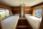 Another standout feature are the comfortable twin fixed single beds at the rear. These are accessed by 3 low steps so even if you have mobility issues you shouldn't have trouble getting into bed as there is no ladder to climb up. There is plenty of storage space in the bedroom for clothes thanks to the 3 overhead lockers plus there are drawers underneath each bed. The other 2 sleeping berths are in the pull-down bed over the cab.