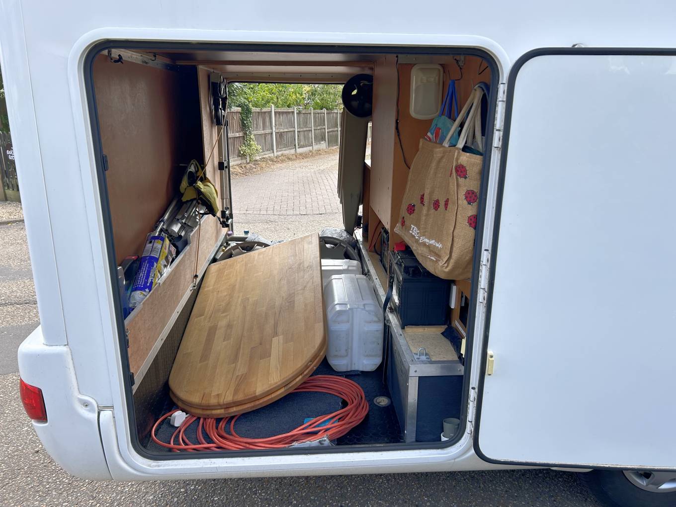 Externally the motorhome has a huge garage which you can fill up with all of your favourite belongings and go long-term touring if that's what floats your boat. The motorhome also has a solar panel to keep your 2 leisure batteries topped up, an external shower point so that you can BBQ outside, a roof ladder, a wind out awning and reversing sensors. Before sale it will have a service and it has an MOT until May 2025 with no advisories on the last test. The owner will also include a free motorhome cover for the front of the vehicle.
