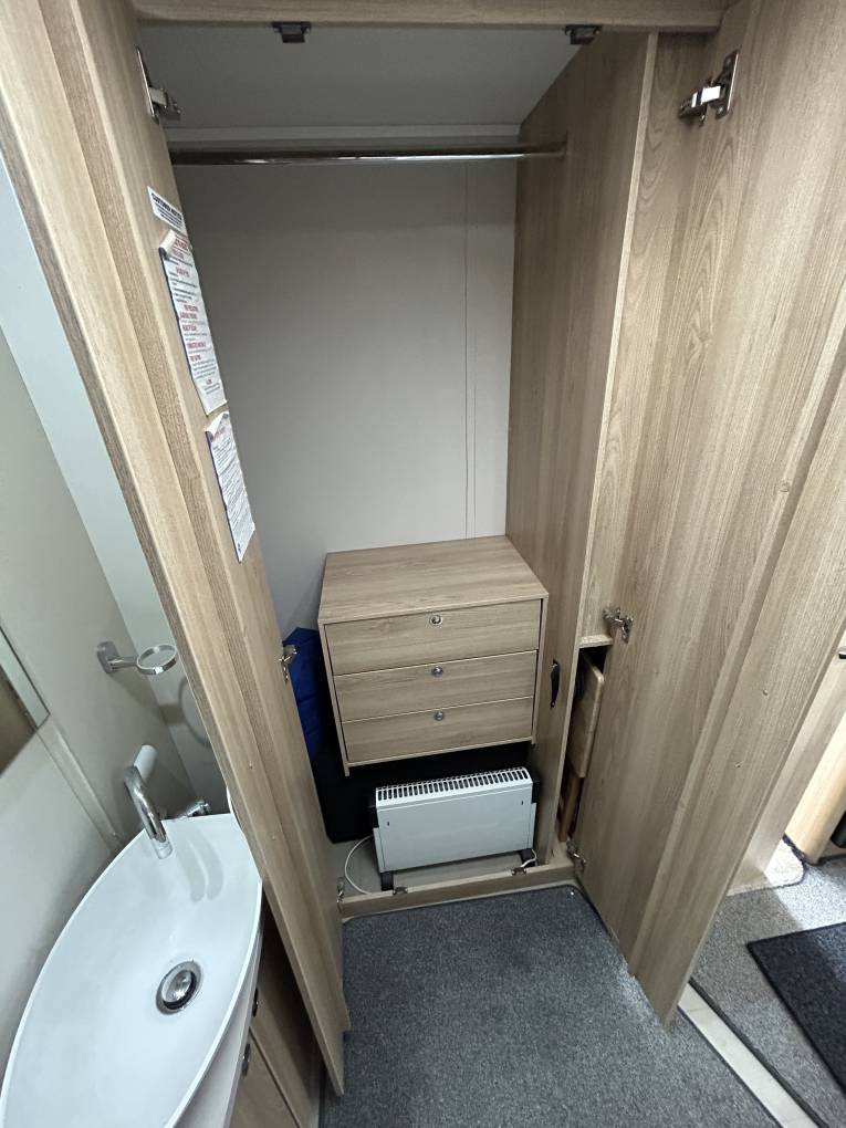 Layout - We start at the rear with the end washroom that boasts a luxury space, the desired Shower Cubicle with Toilet, Washbasin and Mirror. This bathroom also comes with wardrobe space to help ensure nothing is left behind on your next adventure!