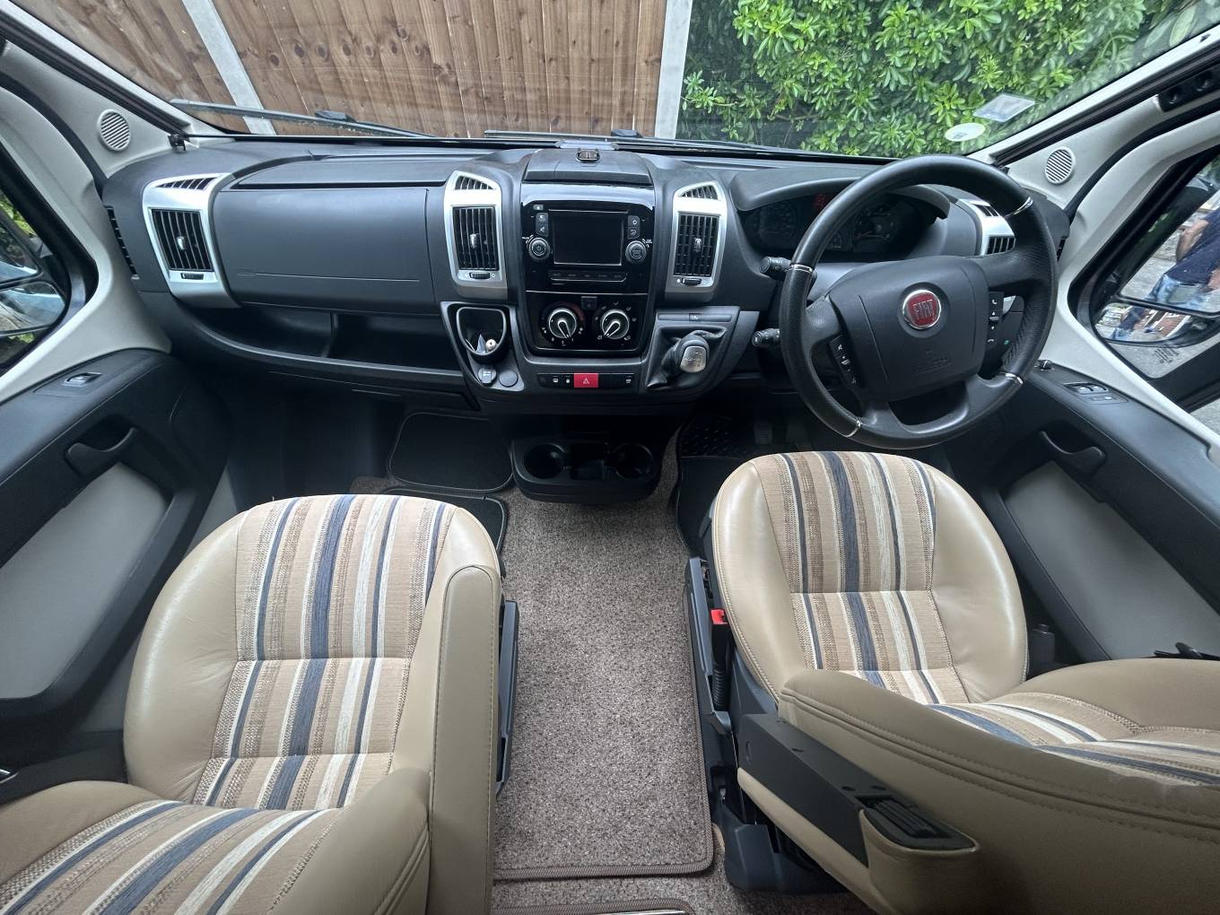 The IH Motorhomes 630RL, built on a Fiat 2.3 chassis with an automatic transmission, offers a luxurious and practical travel experience, making it perfect for extended adventures. This motorhome is packed with modern features, including Bluetooth connectivity, satellite navigation, 4G Wi-Fi, and cruise control, ensuring a connected and comfortable journey. Safety is enhanced with a dual-view reverse camera, while the premium leather upholstery throughout the interior adds a touch of sophistication.