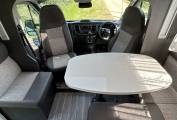 The lounge dinette features an L shape sofa with 2 seat belts on the offside and and a side facing chair on the nearside. When the two front seats are swivelled around five people can enjoy meals, drinks or play games around the large dining table.